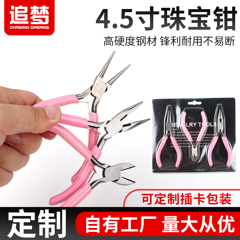 4.5寸珠宝钳三件套DIY手工迷你饰品工具多功能斜口尖嘴剪钳开口钳