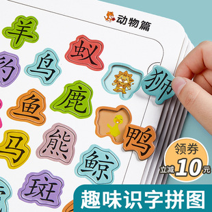 儿童识字拼图3到6岁幼儿趣味认字卡片宝宝平图板益智玩具女孩男孩