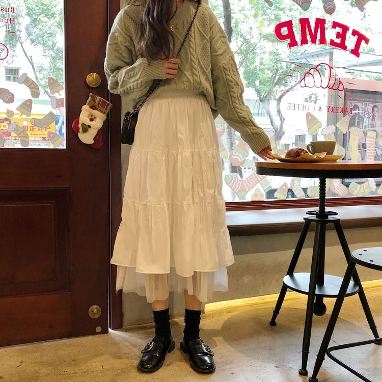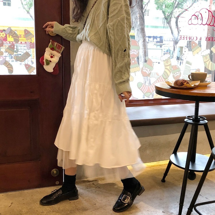 国境を越えた韓国版学院風ネット糸が半身スカートをつなぎ、女子学生は腰が高くて痩せている超仙a字スカートのロングスカートins潮