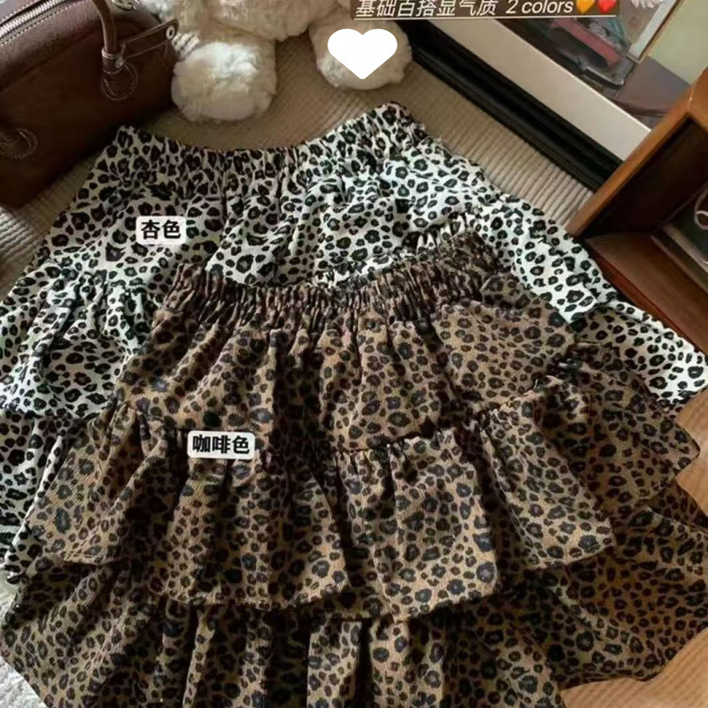 蛋糕半身裙短款2025新款秋冬款高腰小个子松紧蓬蓬裙外穿豹纹短裙