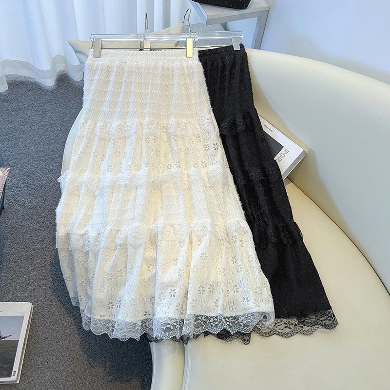 法式复古蕾丝钩花蛋糕裙半身裙女秋冬新款小个子裙子a字大摆裙潮