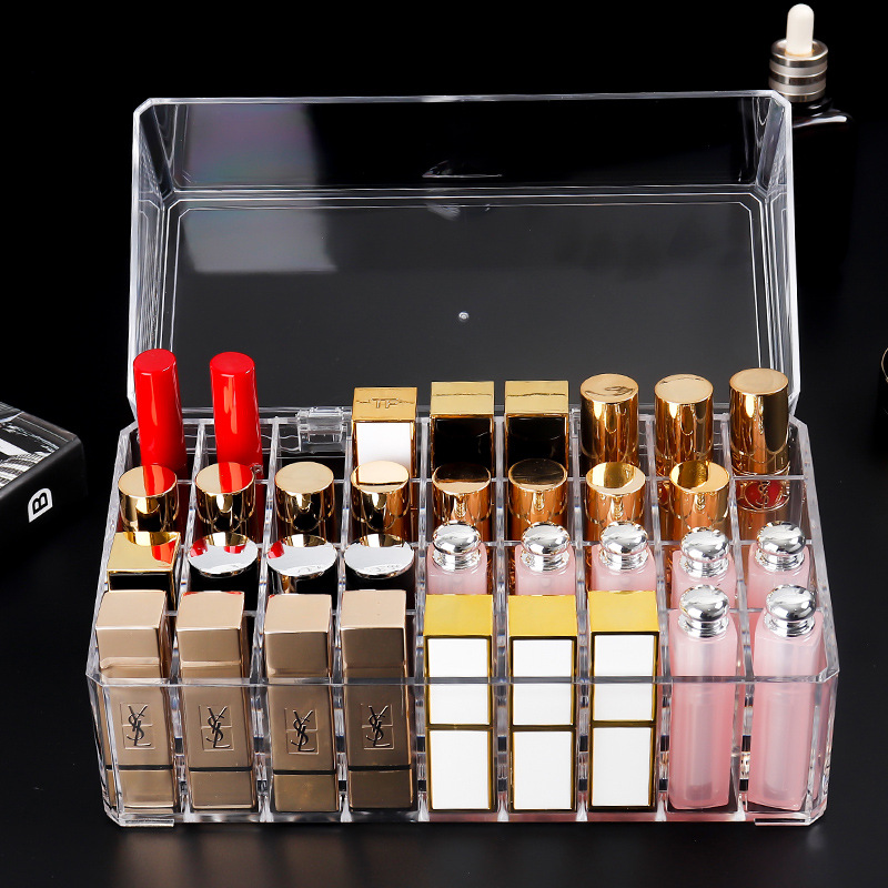 フリップカバー付き口紅収納ボックス、透明防塵デスクトップオーガナイザー、リップグレーズ口紅ラック、アクリル化粧品収納ラック
