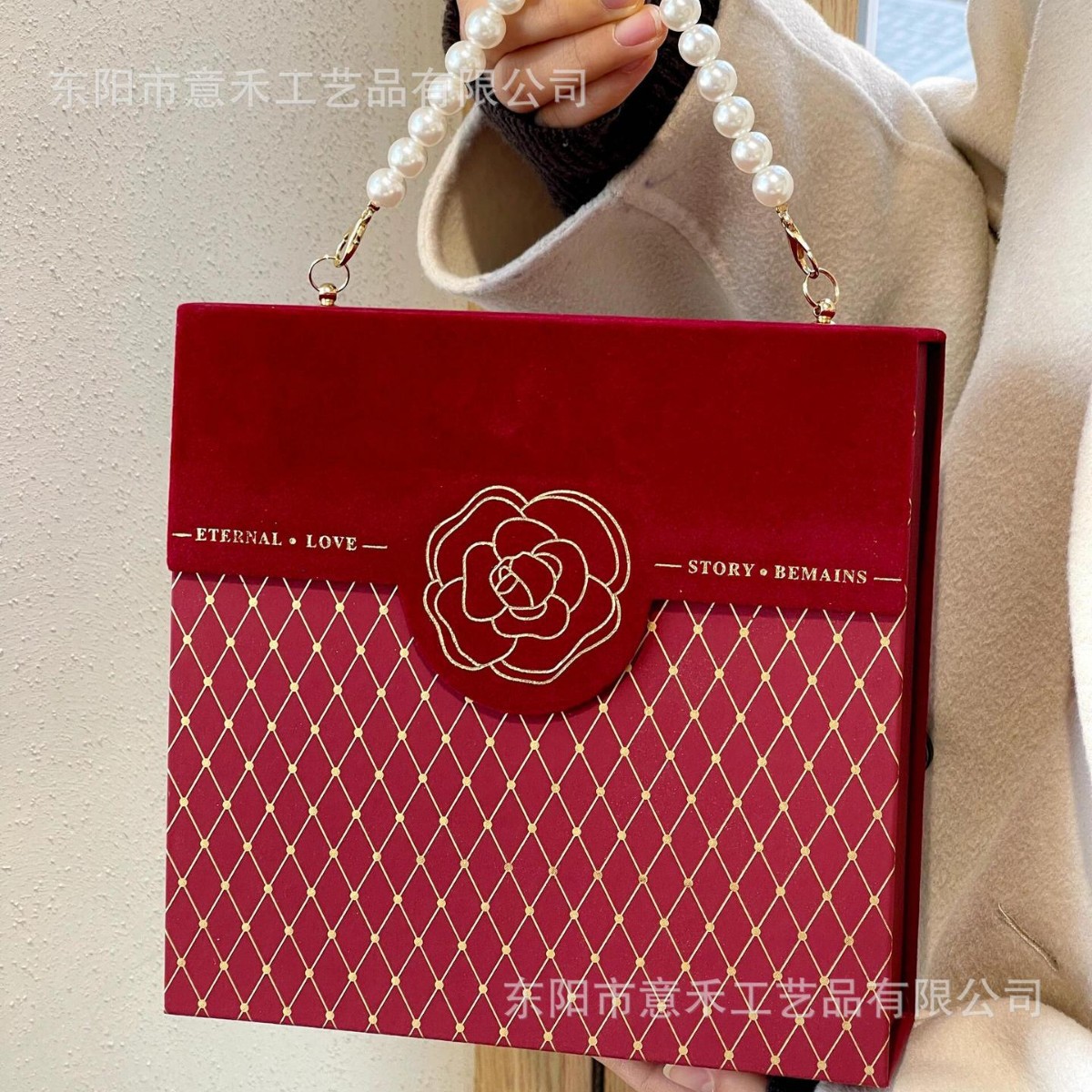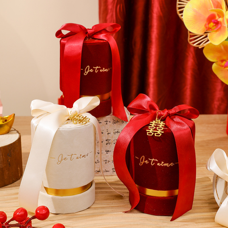 新款丝绒布魅力红金色风个性创意糖果喜糖盒结婚婚礼