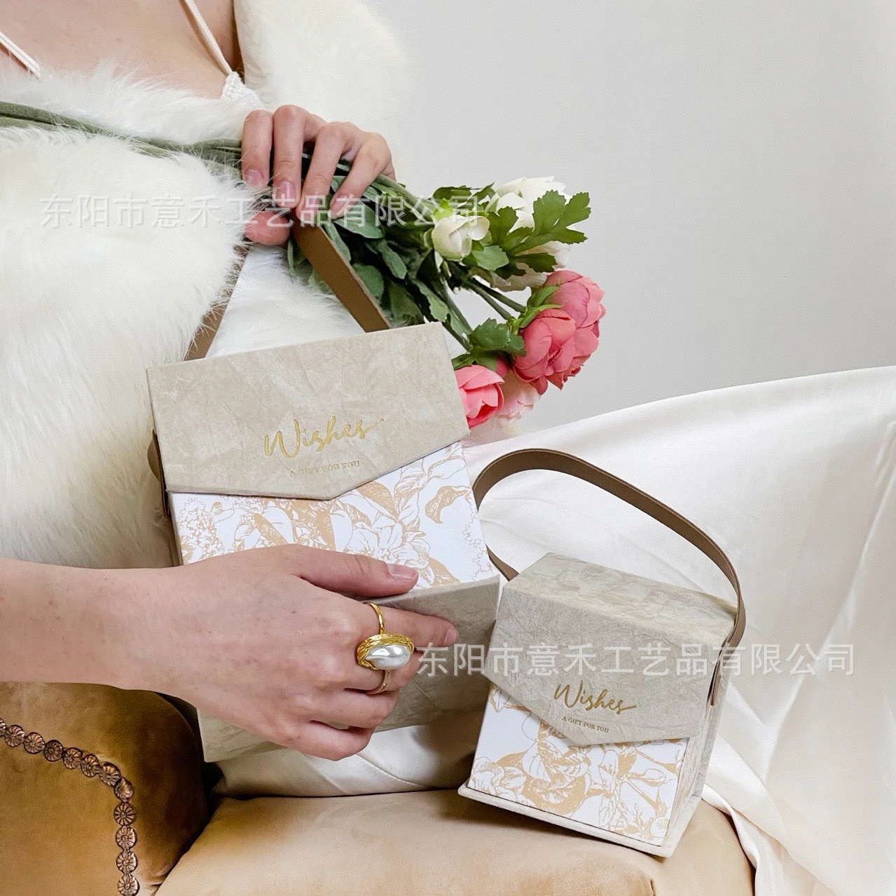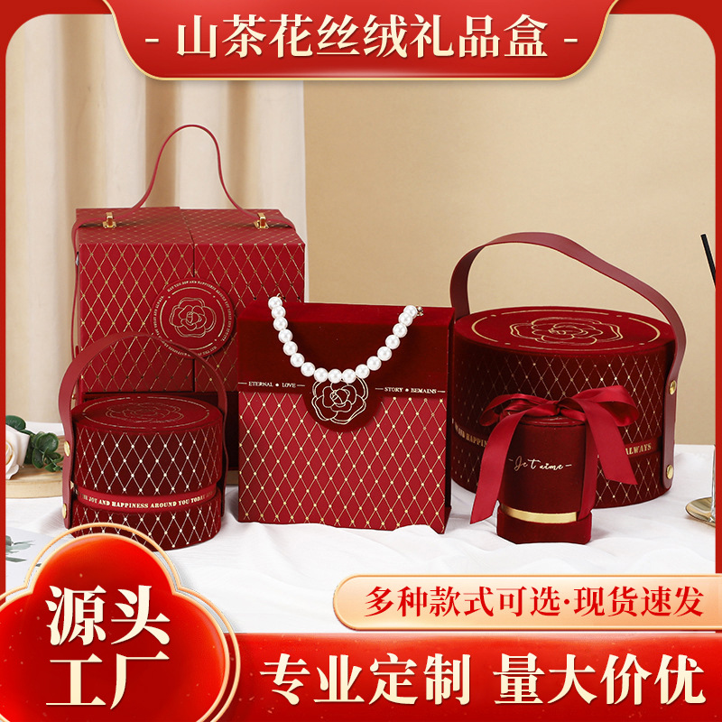 高級絨毛面箔押し金山茶花風お土産礼箱喜糖箱各種祝日プレゼント包装箱