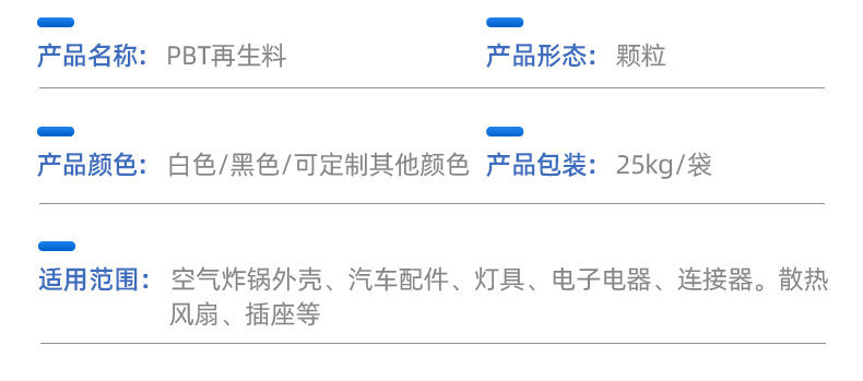 メーカーは黒色PBT再生プラスチック顆粒を供給しています。PBTエアフライヤー原料は繊維強化絶縁グレードです。
