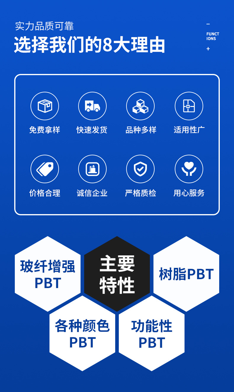 メーカー卸売りブルーpbt回料色カスタムpbt再生料射出顆粒加繊維強化級原料