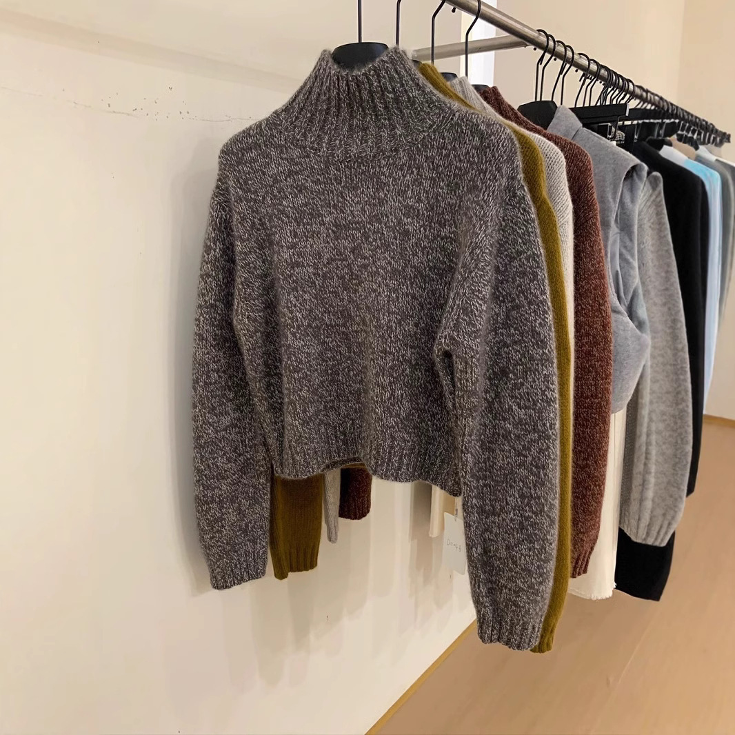 フランス式のゆったりとした短い高襟のカシミヤのニットの女性の秋冬は小さい背のセーターの気質のウールの底のシャツを厚くします。