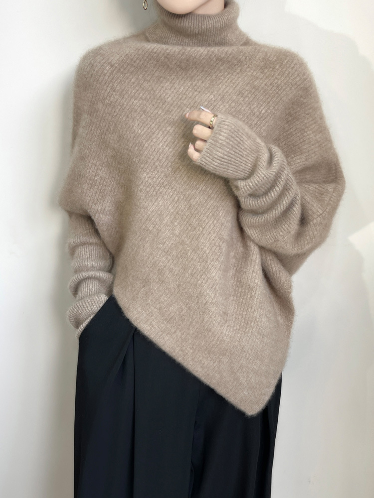 厚手のハイネック100%ウールセーター、女性用、ゆったりとした厚手、カジュアルなスタイル、プルオーバー、ゆったりとしたニットセーター、ベースレイヤー、越境販売