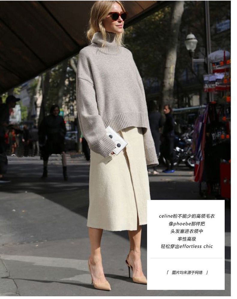 秋冬新款欧货高领羊毛衫女加厚宽松慵懒风毛衣纯色大码针织打底衫