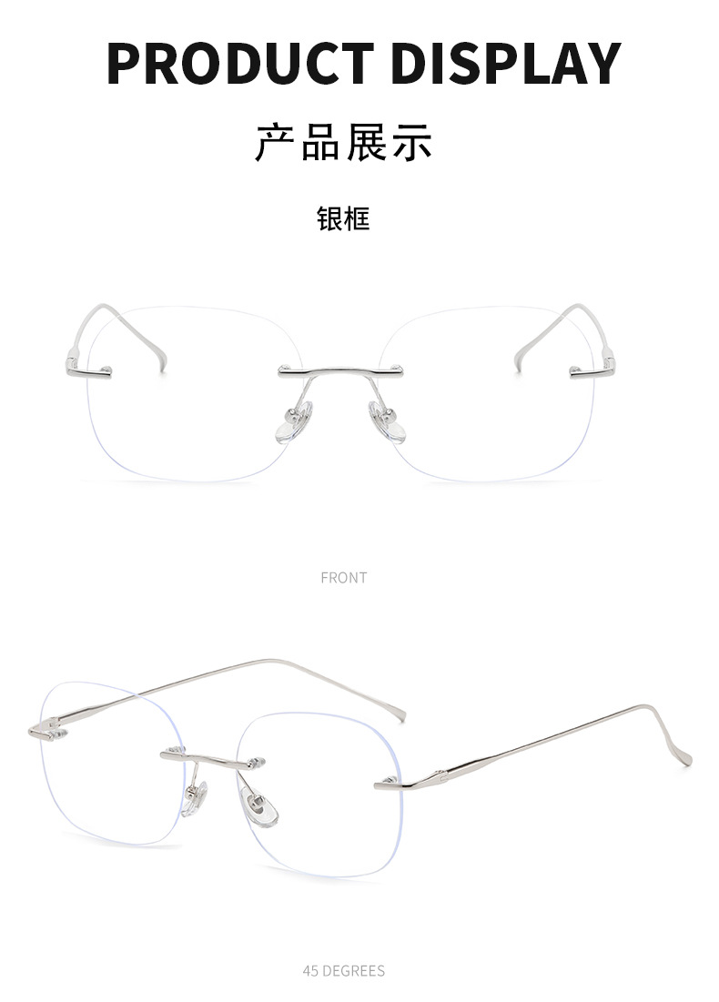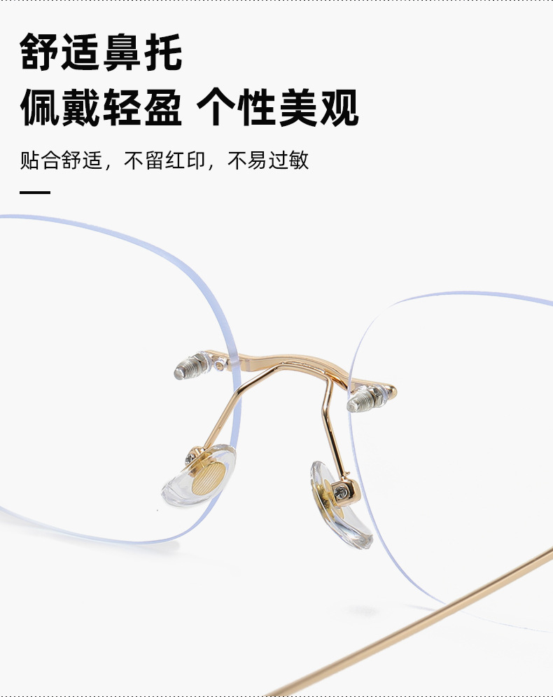 无框眼镜女超轻钛架防蓝光眼镜纯欲无边框镜架可配度数近视眼镜框