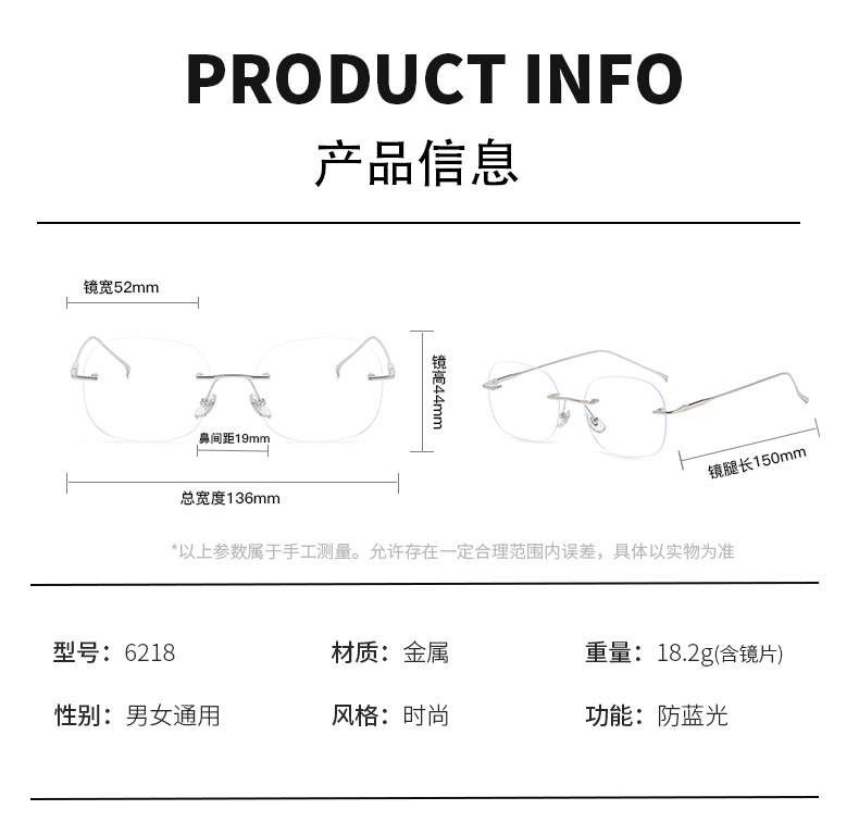 私を眩しく見せる、徐燕と同じスタイルの金線メガネ。度付き近視メガネフレームとしても使用可能。ネットで話題のノーメイクフレームレスメガネ(女性用)
