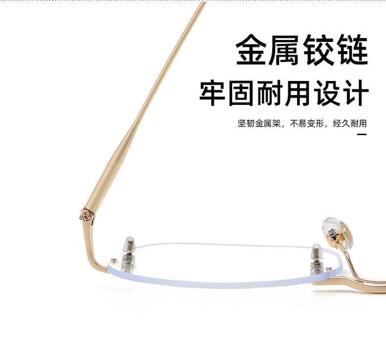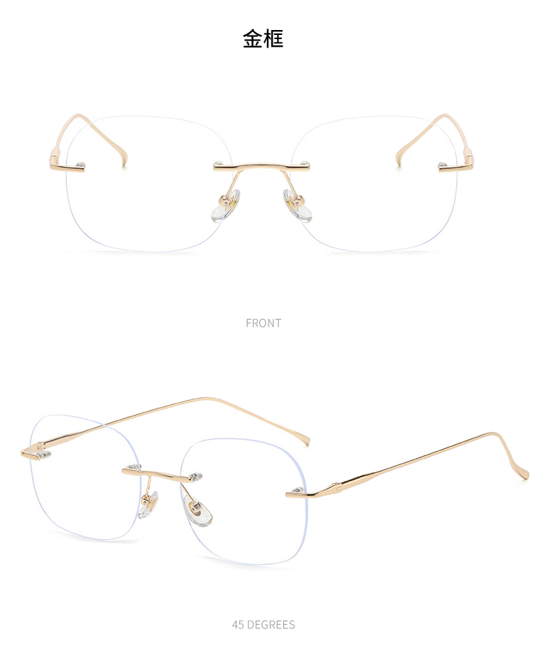 ネット赤insブルーレイ防止平光鏡女金属無枠多角形ファッション眼鏡フレーム近視眼鏡フレーム