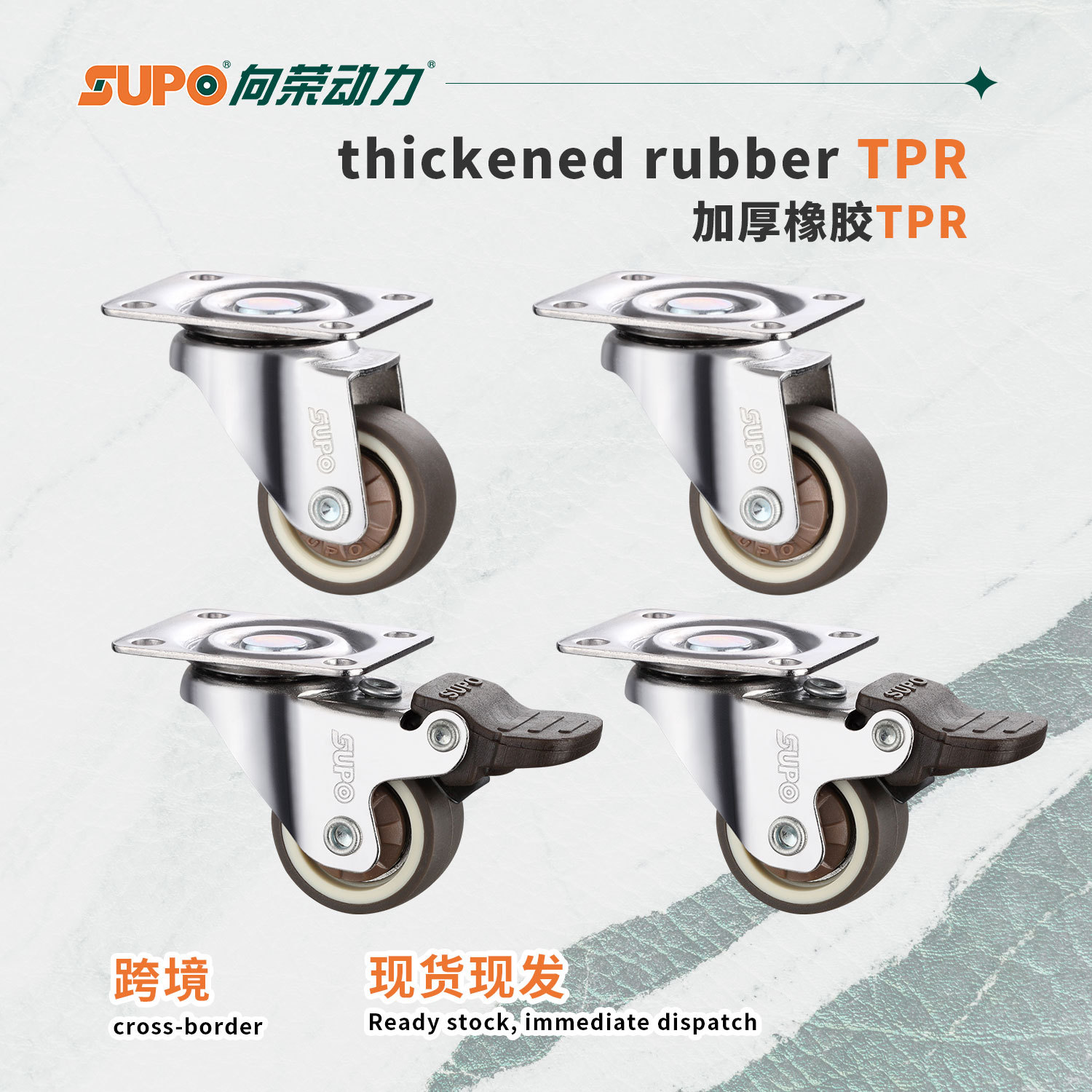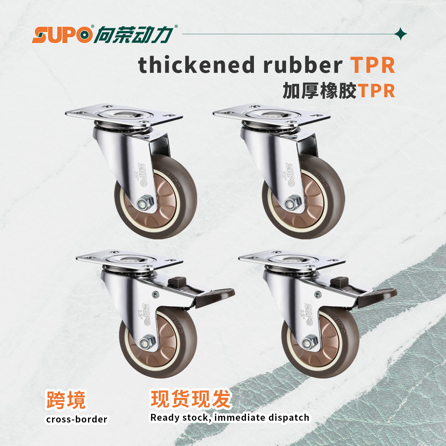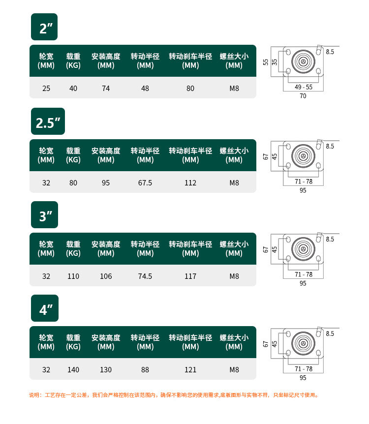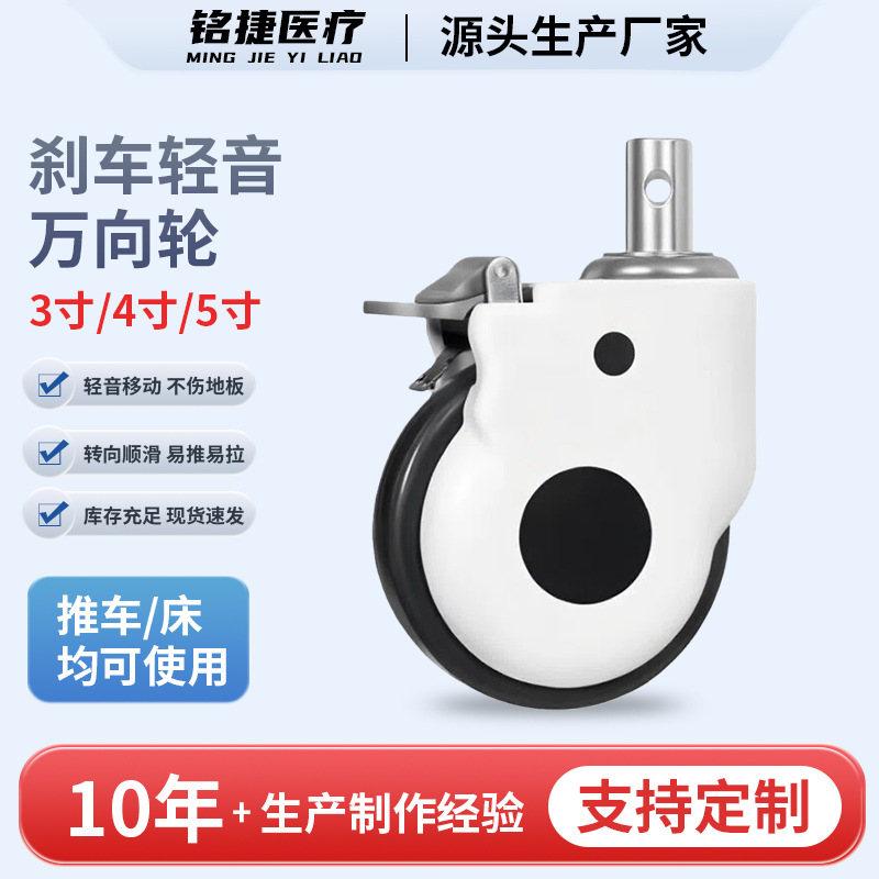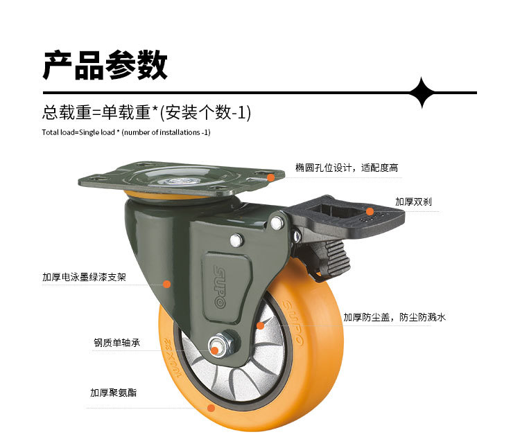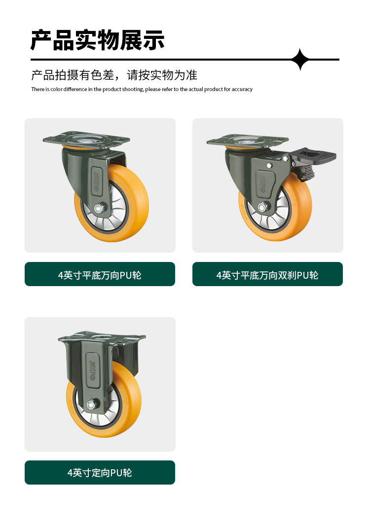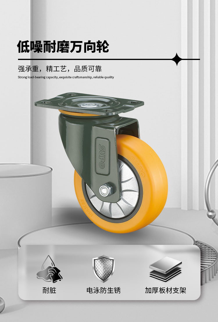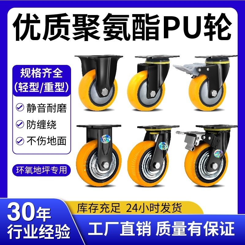 向荣橙色平底万向脚轮2.5寸转向刹车滑轮减震耐磨工业轮3寸定向轮