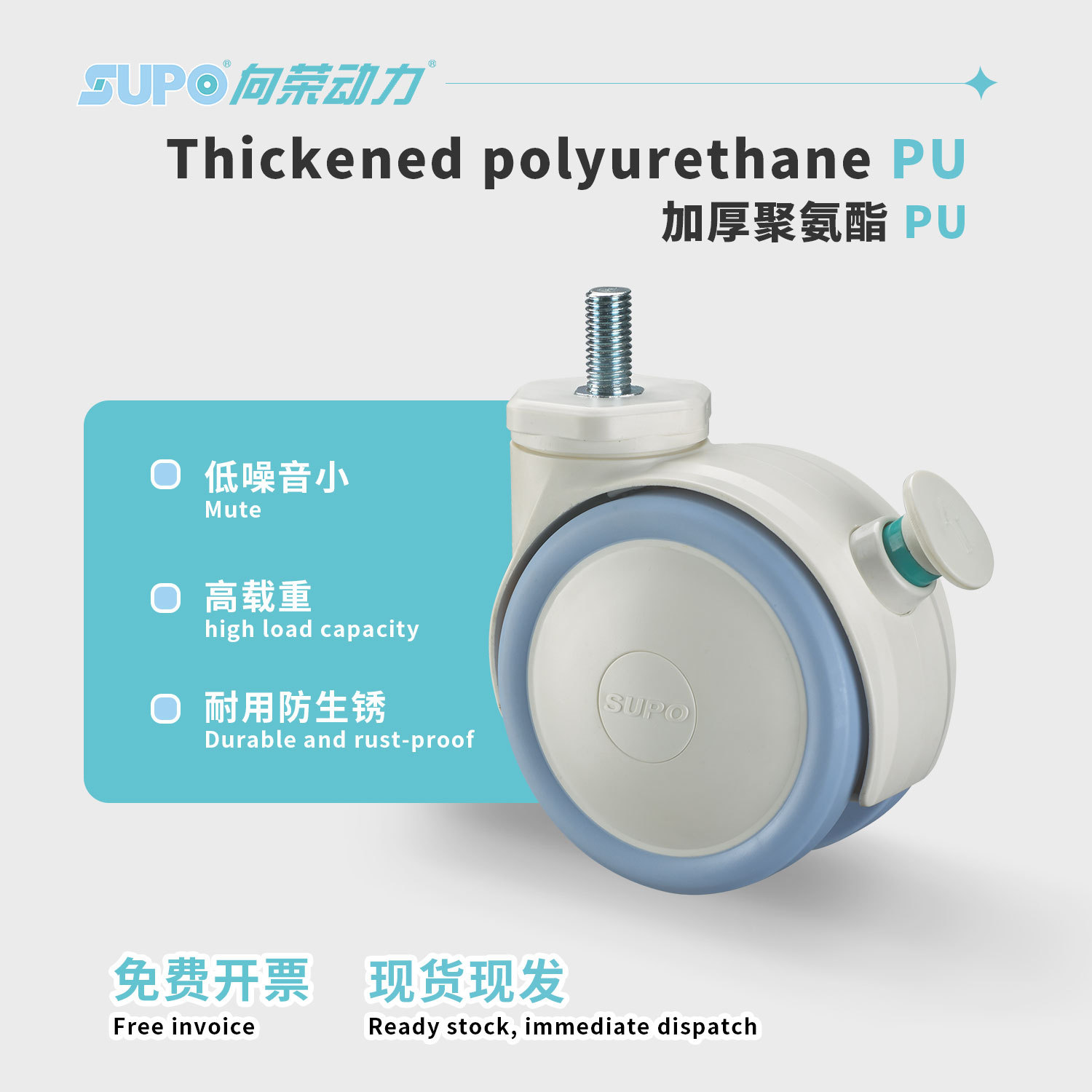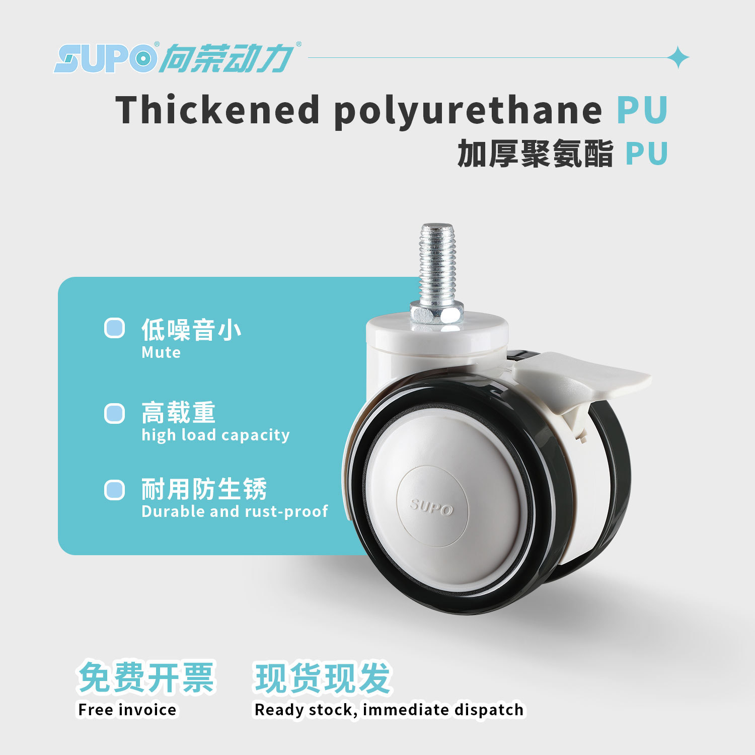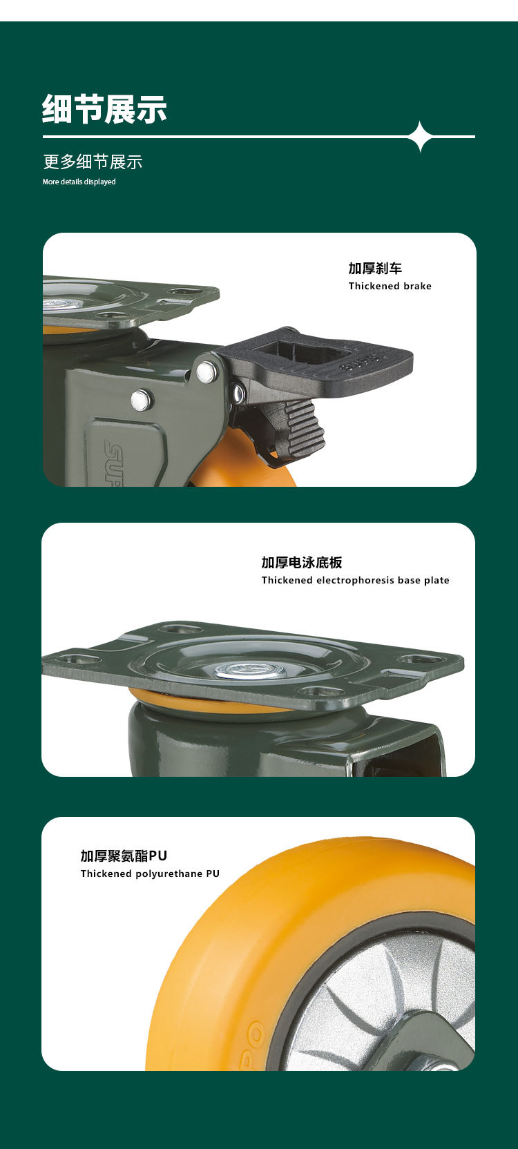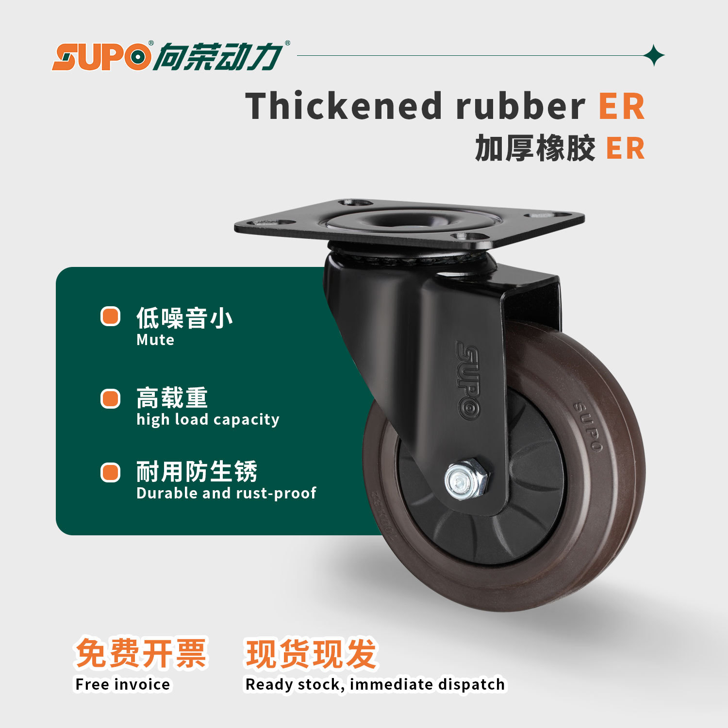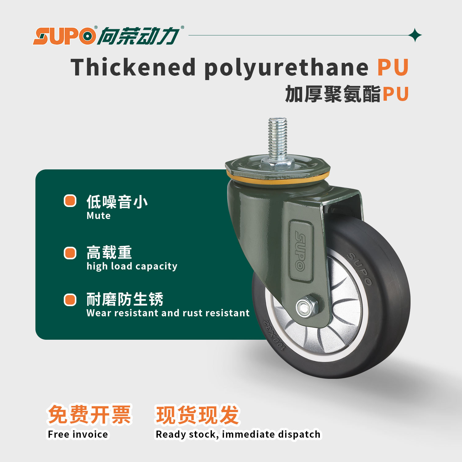 向荣橙色平底万向脚轮2.5寸转向刹车滑轮减震耐磨工业轮3寸定向轮