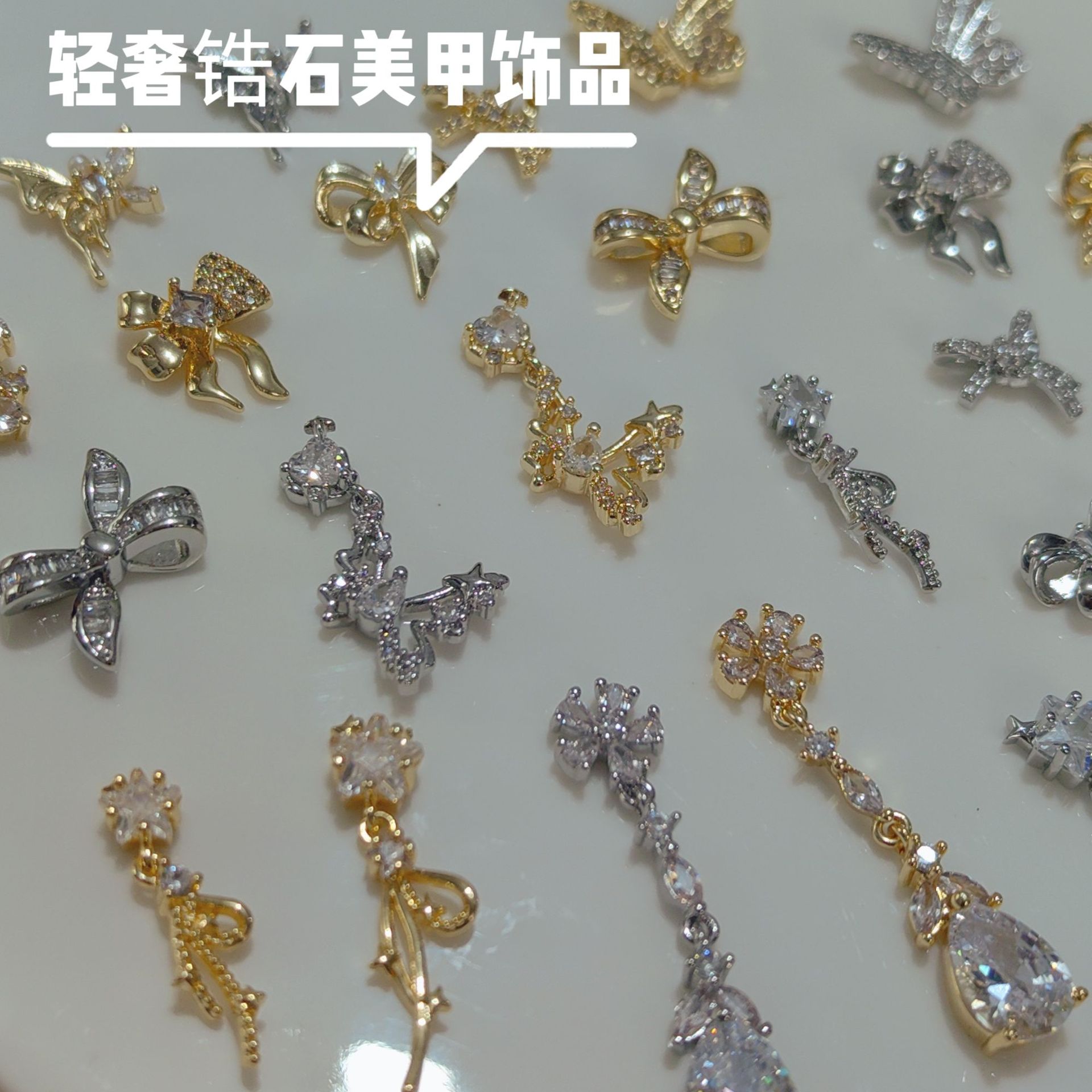 新しいネイルアートジュエリーライト高級爆発ジルコン弓ストリーマースターウォータードロップペンダント三次元蝶ネイルダイヤモンド