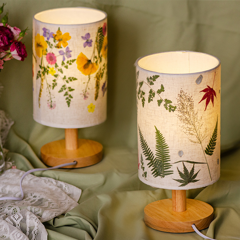押し花テーブルランプDIY素材キット、クリエイティブなベッドサイドナイトライト、中秋節の手作りサロン活動、植物ドライフラワーランプ