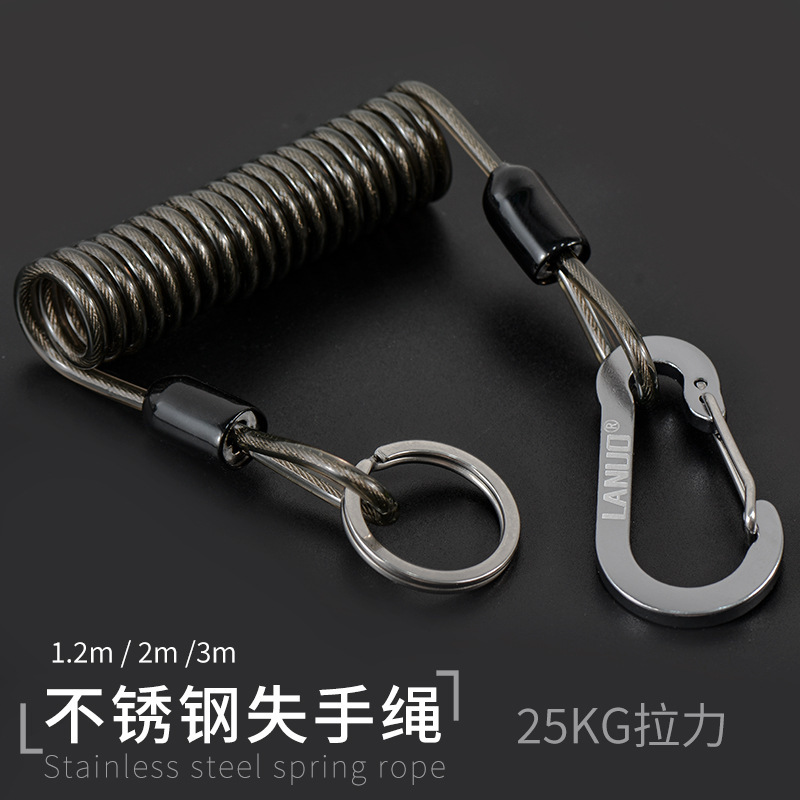 ステンレス鋼ワイヤーロープ、ハイエンド伸縮ロープ、ボートフィッシングルアー、紛失防止ハンドロープ、自動リバウンド強化太いロープ