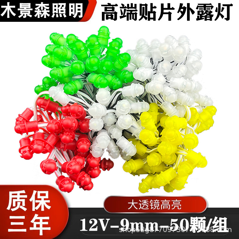 メーカー直販LEDストリングライト、単色レンズ露出型ライト、12V9mm屋外防水パッチLED穿孔ライト