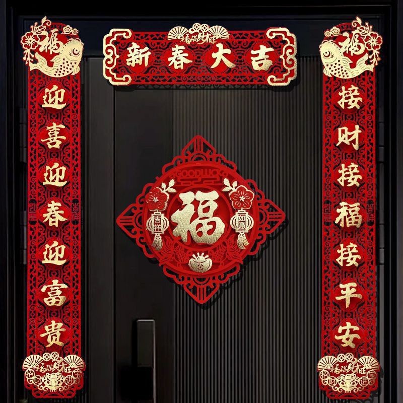植毛対聯2025年フック新型蛇年新年高級春聯家庭用旧正月福字植毛門