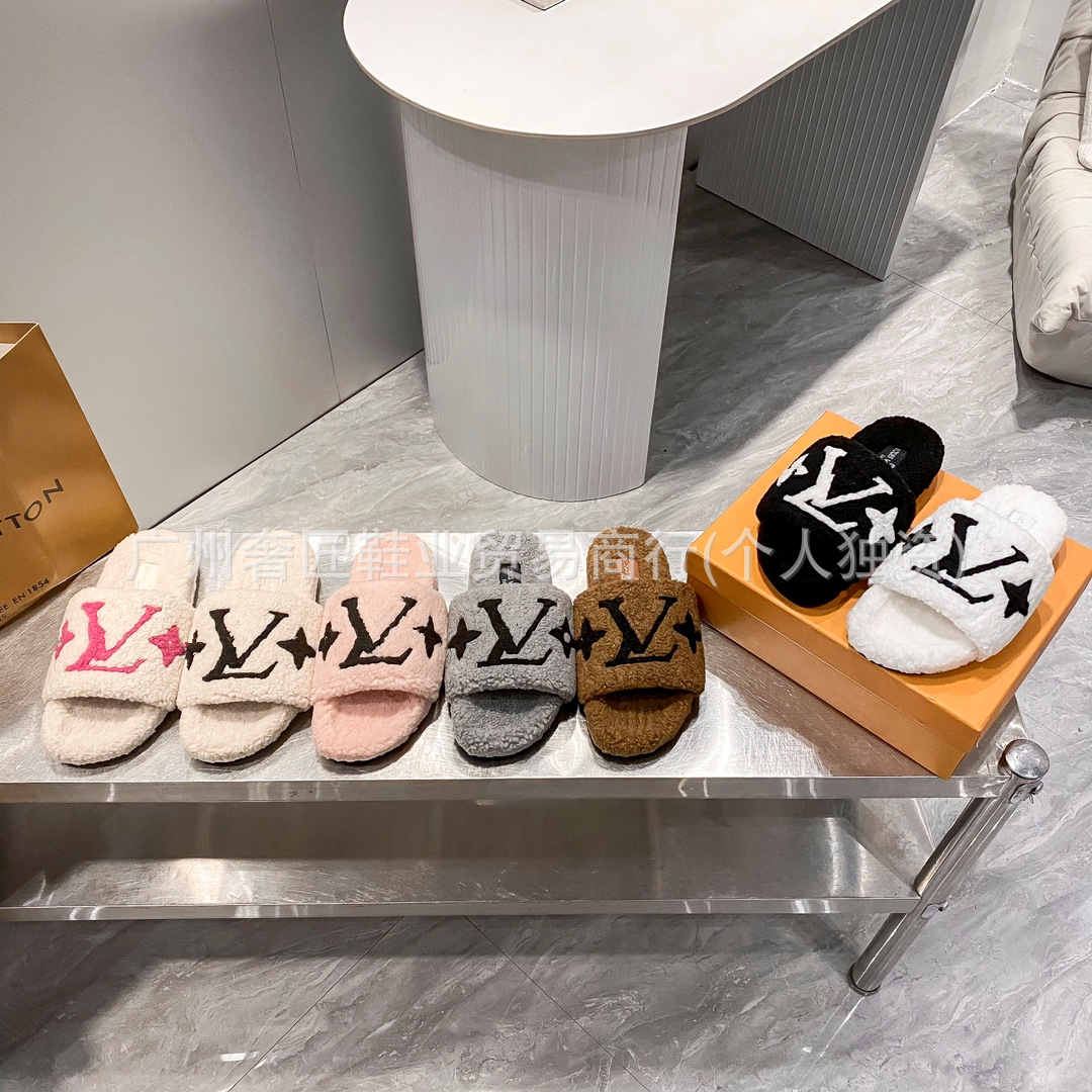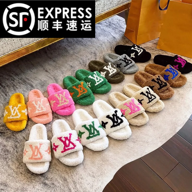 热销2025新款L家平底拖鞋糖果色一脚蹬毛毛拖鞋时尚百搭单鞋批发