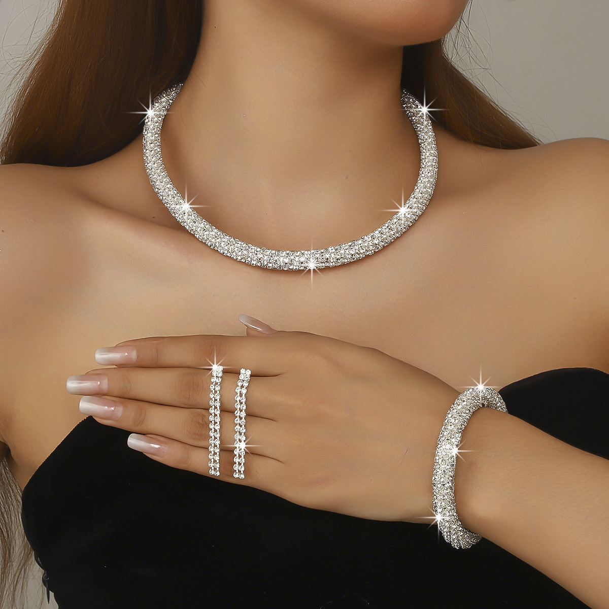 新娘饰品1/2/3排金银项圈手镯耳钉两件套水钻爪链首饰项链套装女