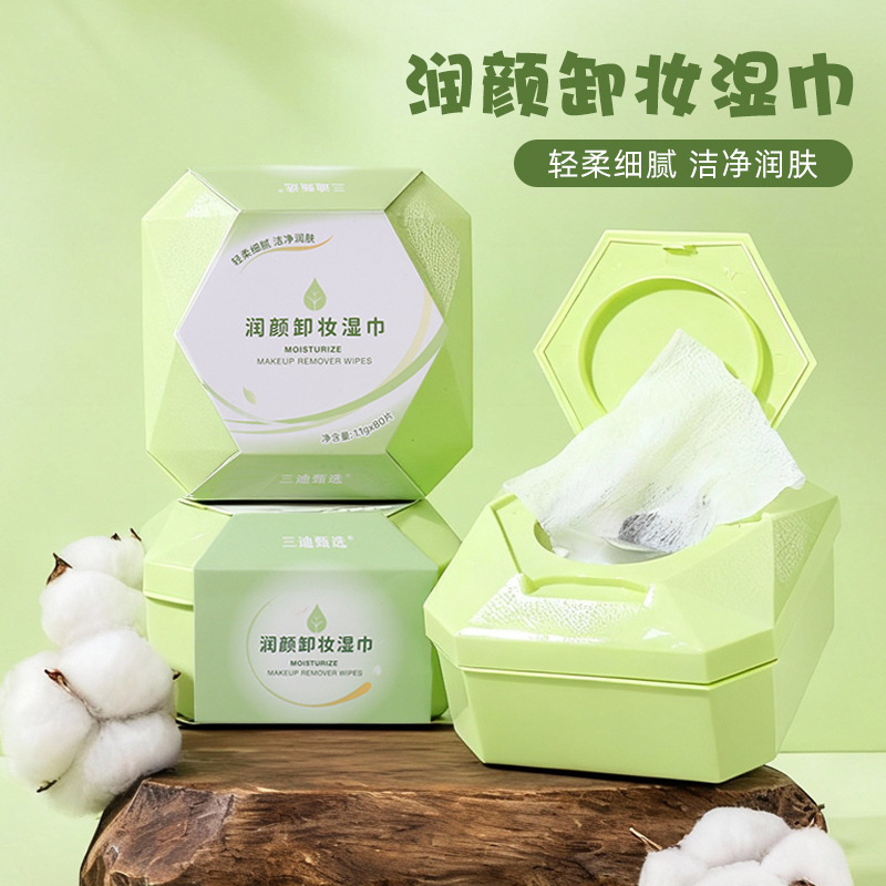 盒装80片润颜卸妆湿巾温和卸妆眼唇脸部深层清洁抽取式卸妆湿巾