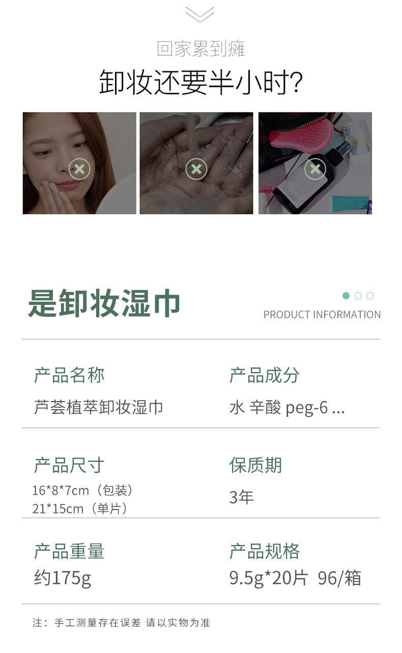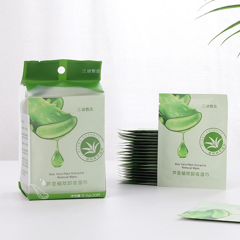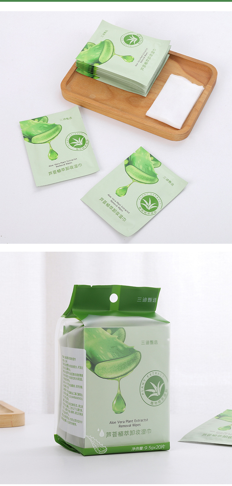 アロエ植え込み化粧落としウェットティッシュ20枚入顔深層洗浄使い捨て一枚入化粧落とし水刺不織布