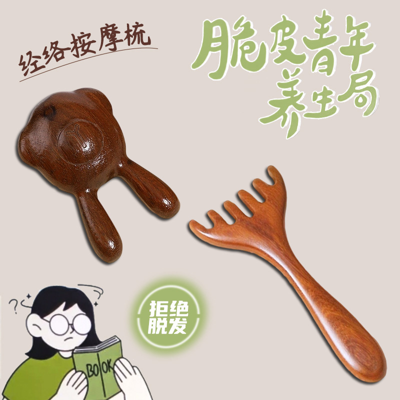 キャンバスの赤い家の新型の経絡マッサージは金糸の檀木の頭部の経絡を櫛にします。