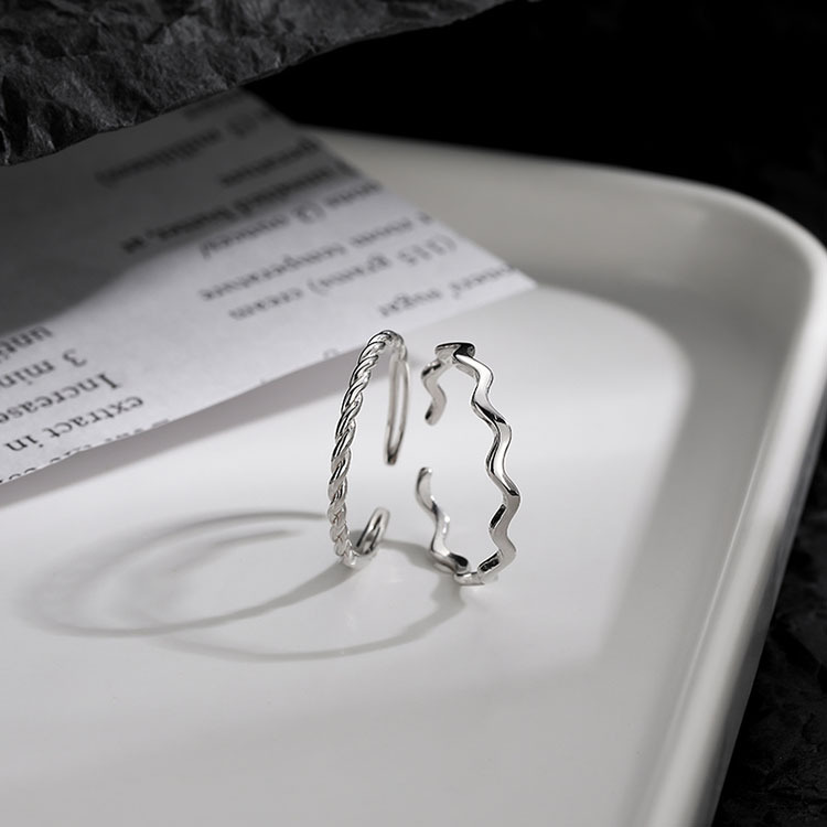 旭日組合せ戒波素輪指輪女ins韓国版曲線麻花超細い人差し指関節指輪尾戒