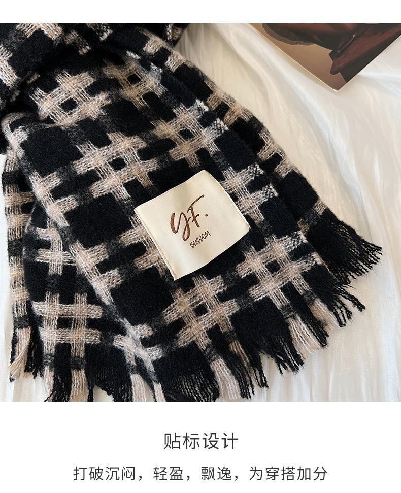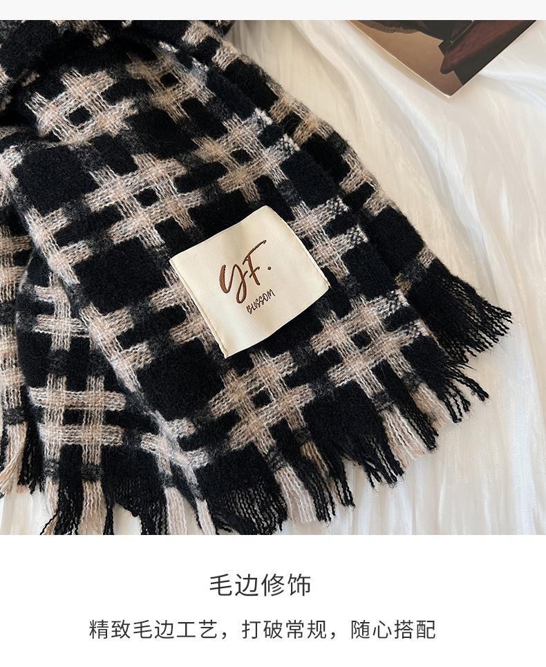 2023秋冬の新型韓国版はカシミヤのフリンジの格子のマフラーをまねます。