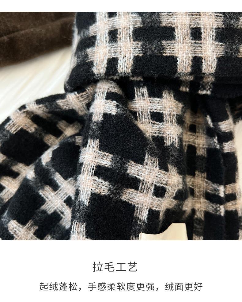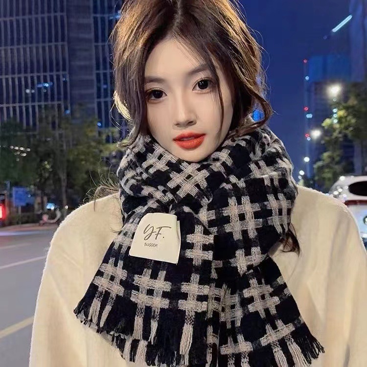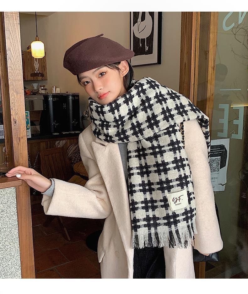 秋冬スカーフ レディース 冬用 イミテーションカシミヤスカーフ 韓国風 雰囲気のあるネックウォーマー 保温性のあるチェック柄スカーフ 軽やかな高級感