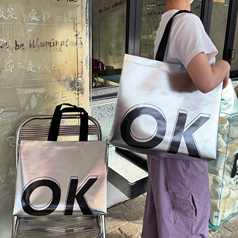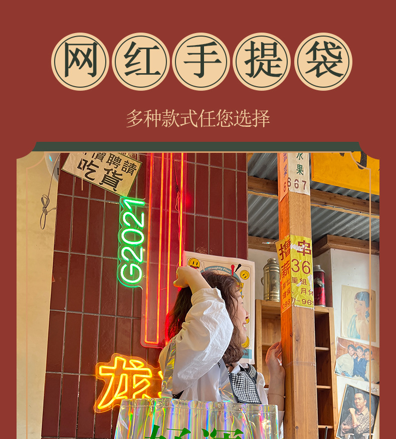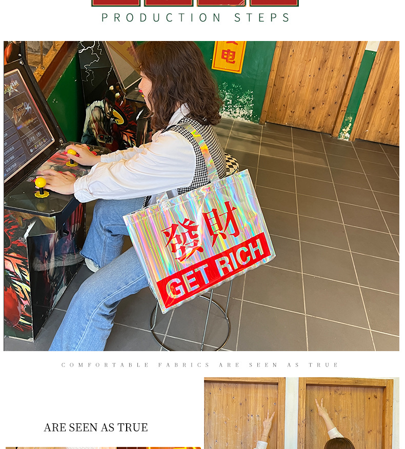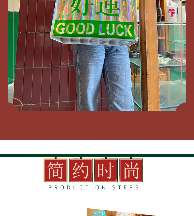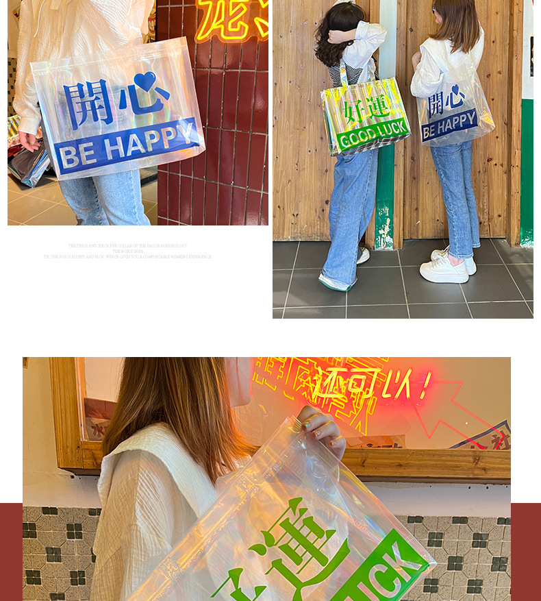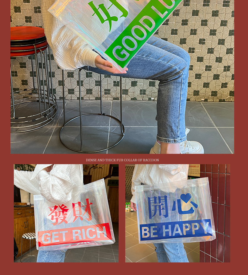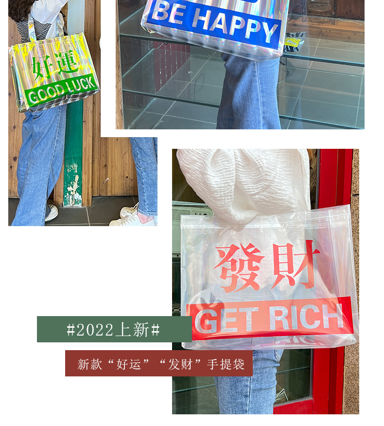 レーザー PVC バッグハッピーフォーチュンポータブルショルダーギフトバッグレトロ衣類ハンドバッグショッピングバッグ卸売