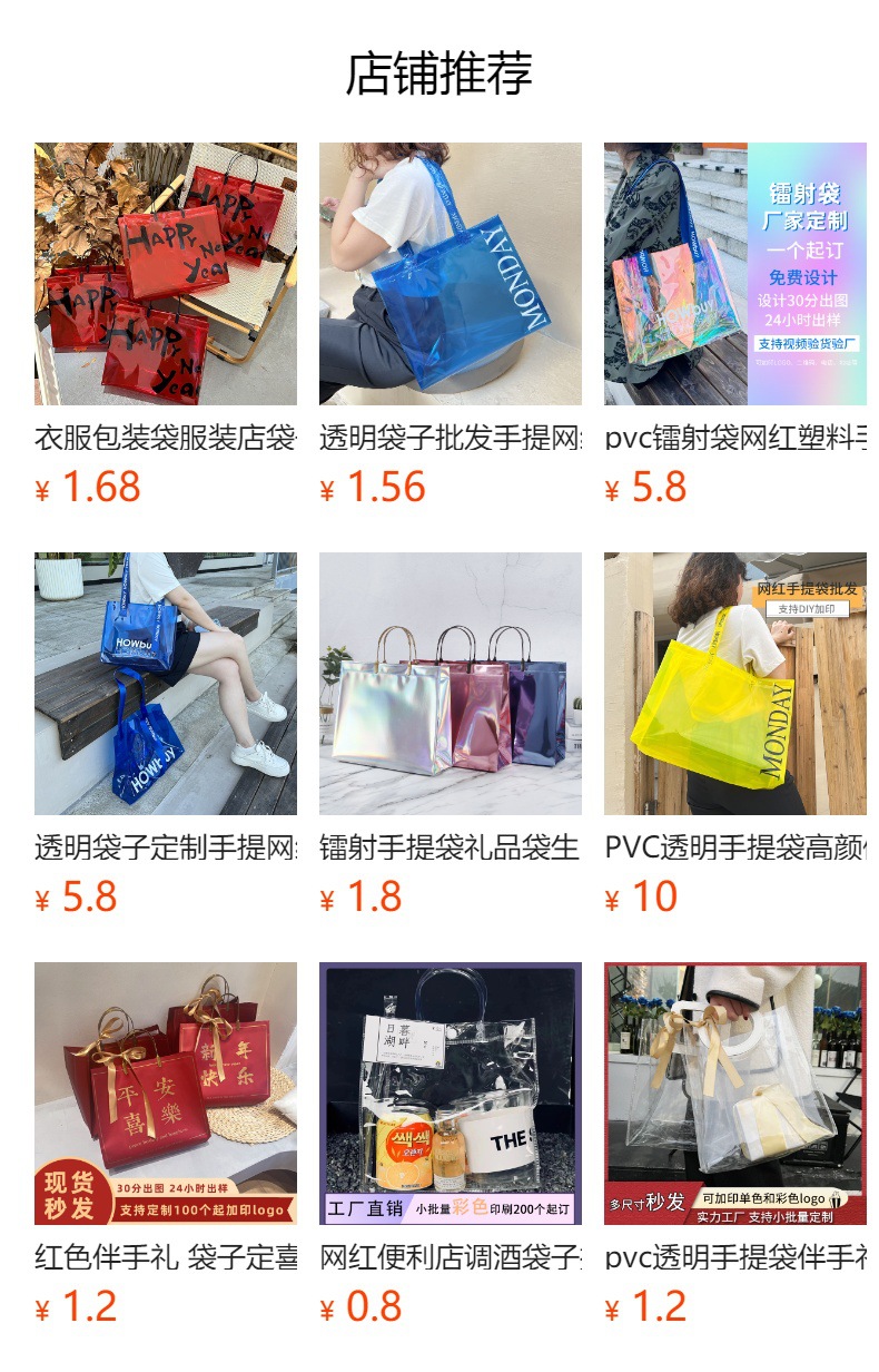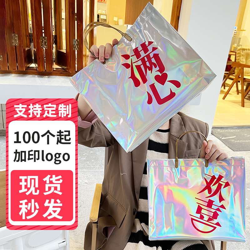 PVC袋透明手提げ袋はアップグレード版のレーザー手提げ袋を厚くして洋服店の袋をカスタマイズしてプレゼントを入れる