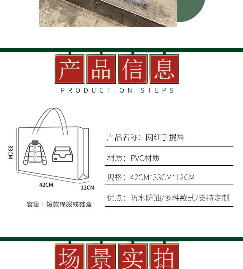 Pvc透明手提げ袋高颜値レジ袋大insビニール袋ギフト袋厚手服装袋卸売り