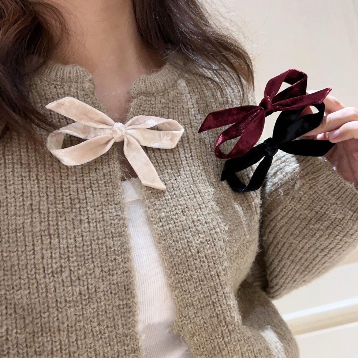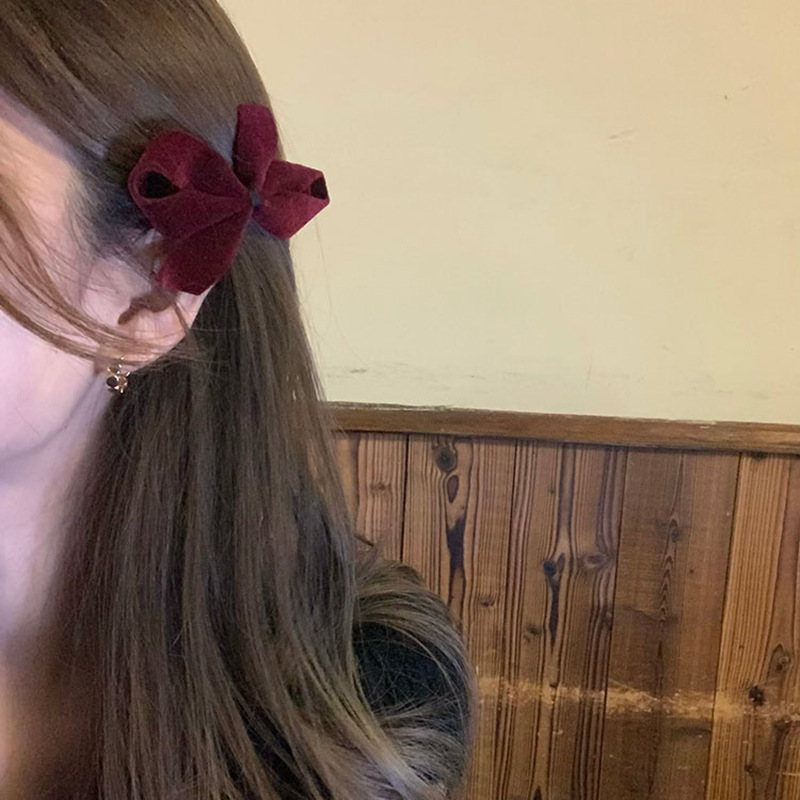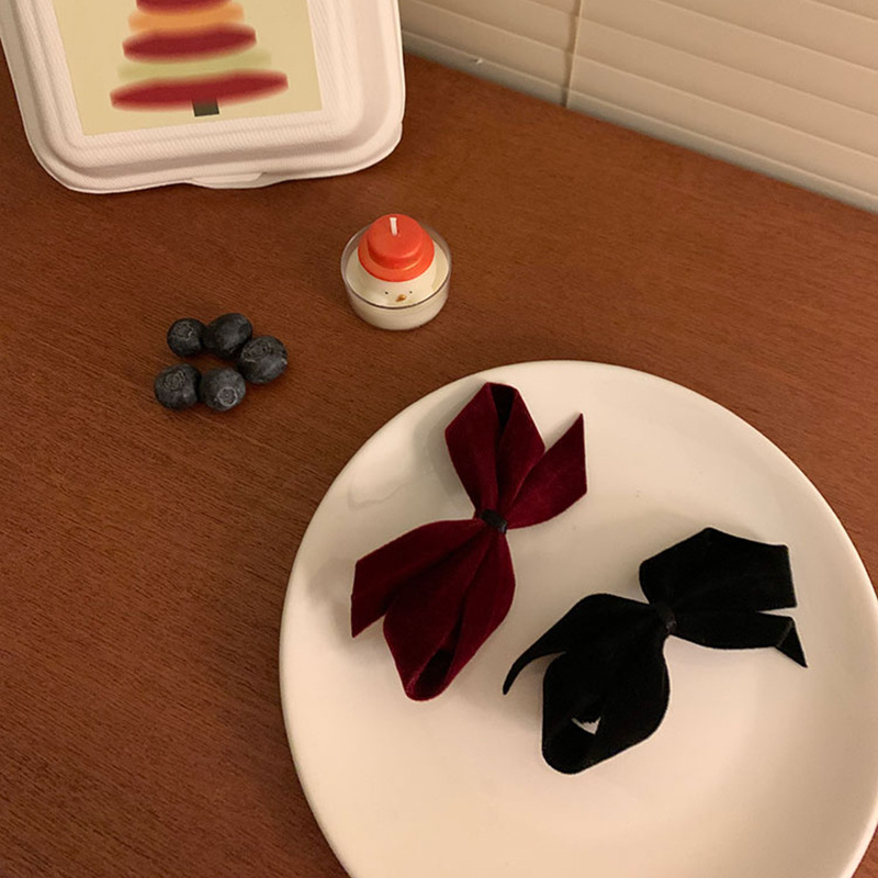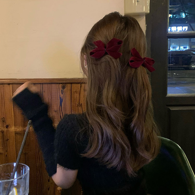 フランスの秋冬の質感のベルベットの蝶結びのヘアピンはシンプルです。