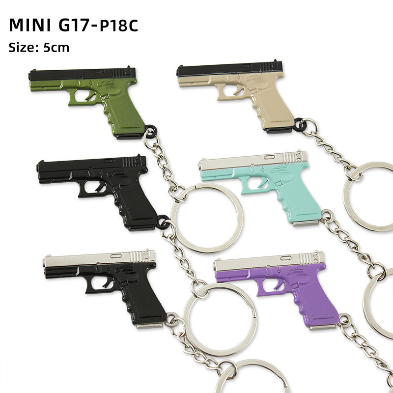 跨境武器模型 迷你P18C格洛克金属模型玩具挂链钥匙扣挂饰5cm