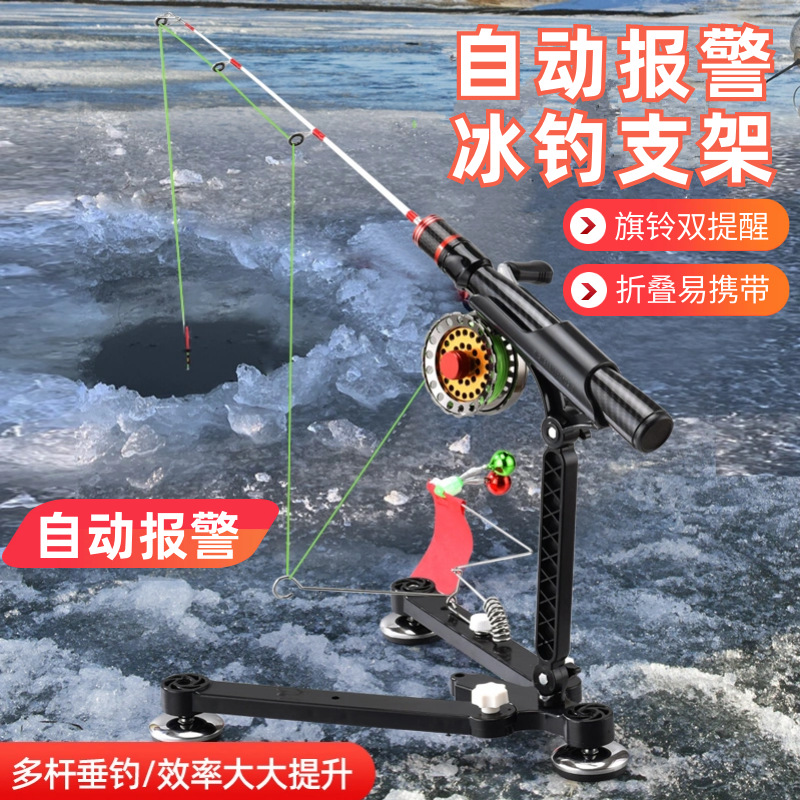 新款自动报警冰钓支架落地式三角折叠便携冬钓筏钓冰钓竿支架炮台