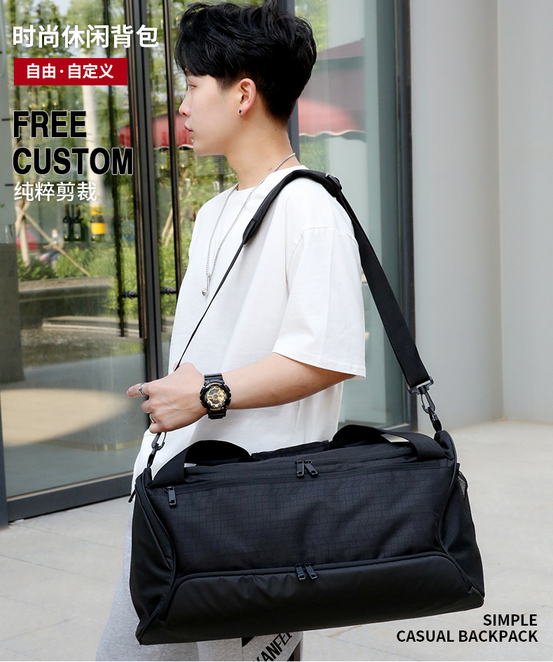 新型大容量旅行鞄乾湿分離フィットネスバッグ男性独立靴倉庫スポーツバッグシングル肩斜めショルダーバッグ印字
