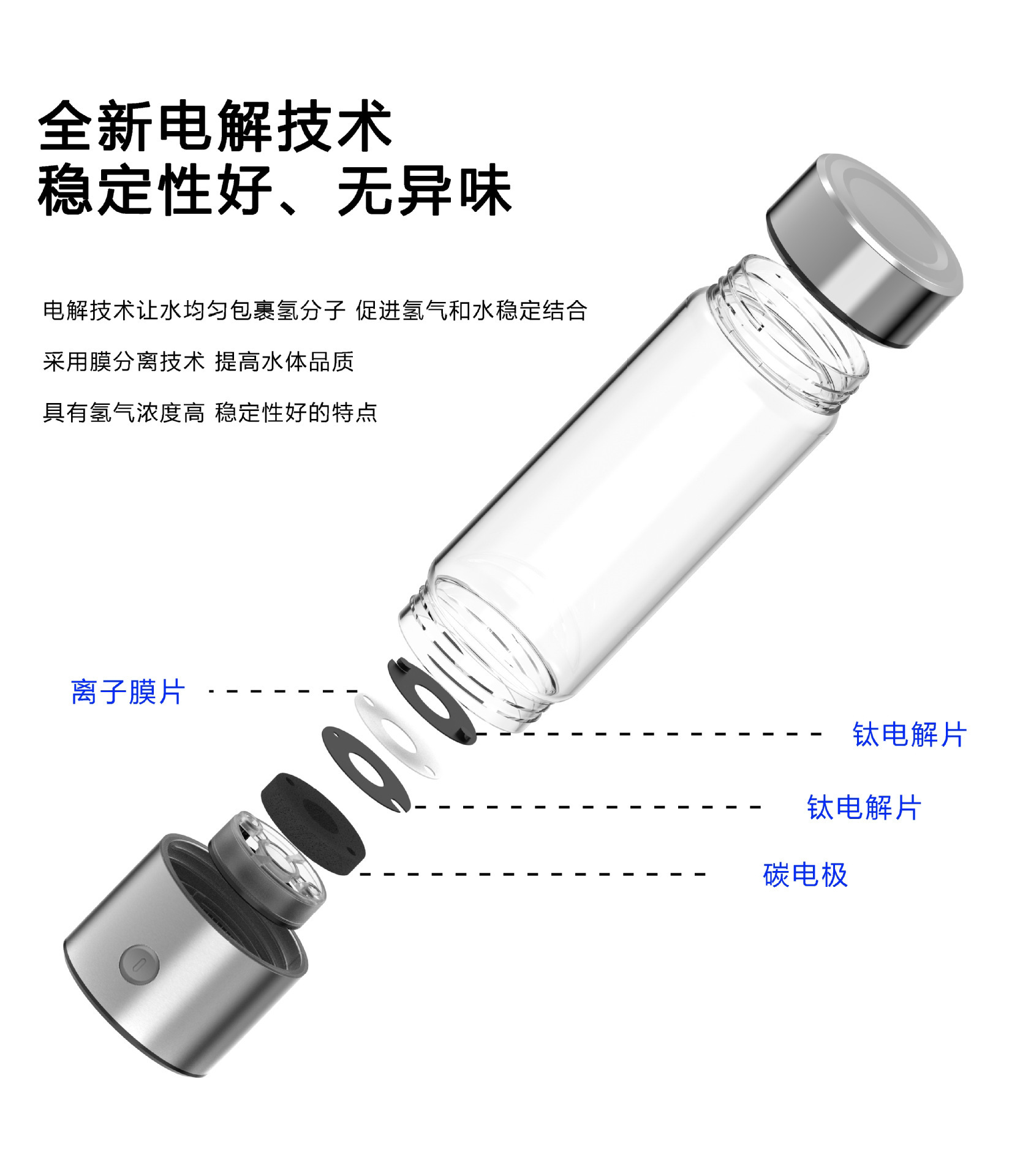 SPE高浓度氢氧分离富氢水杯PEM三用电解氢气水素瓶负离子电位水杯