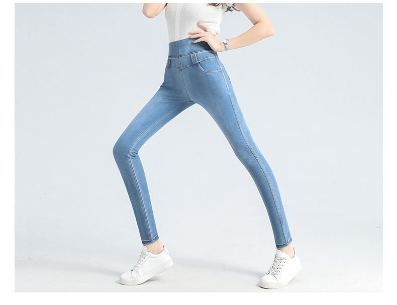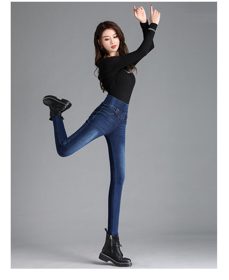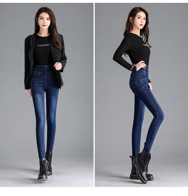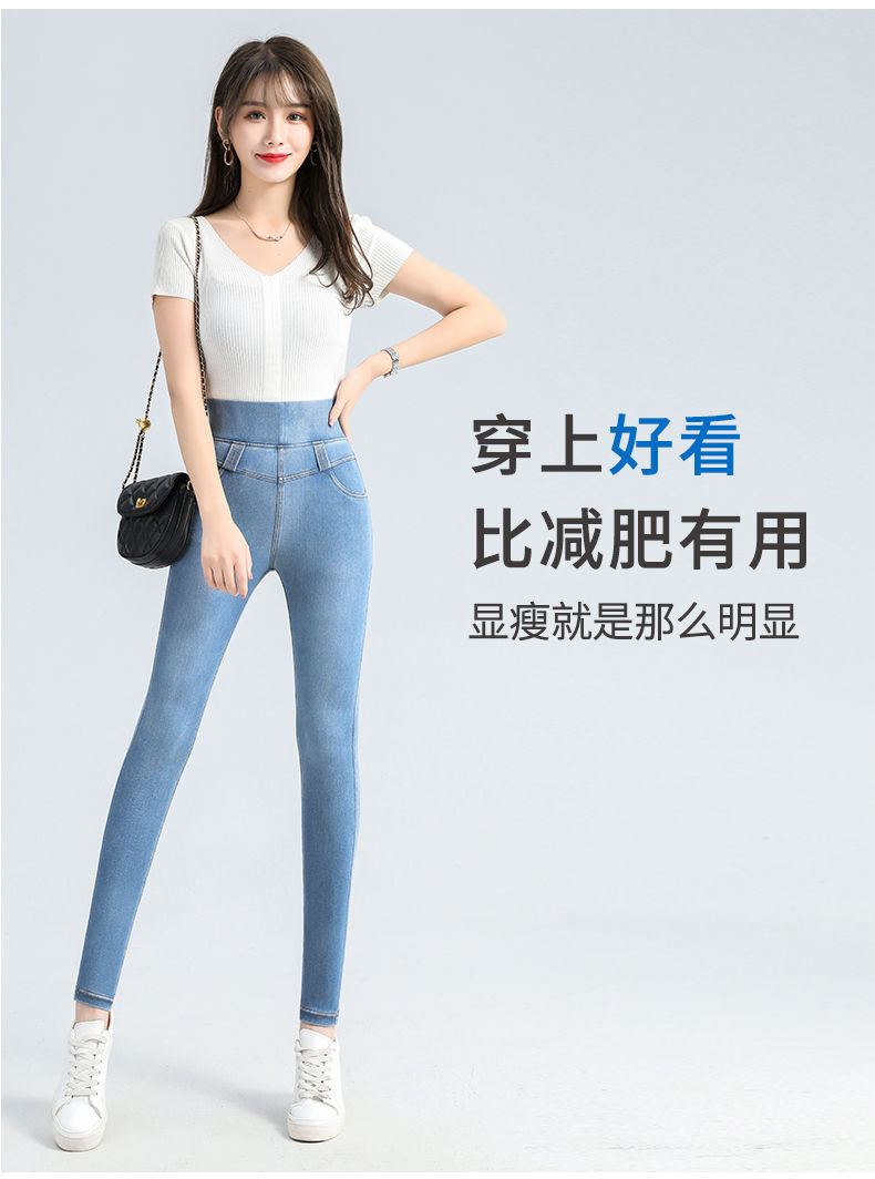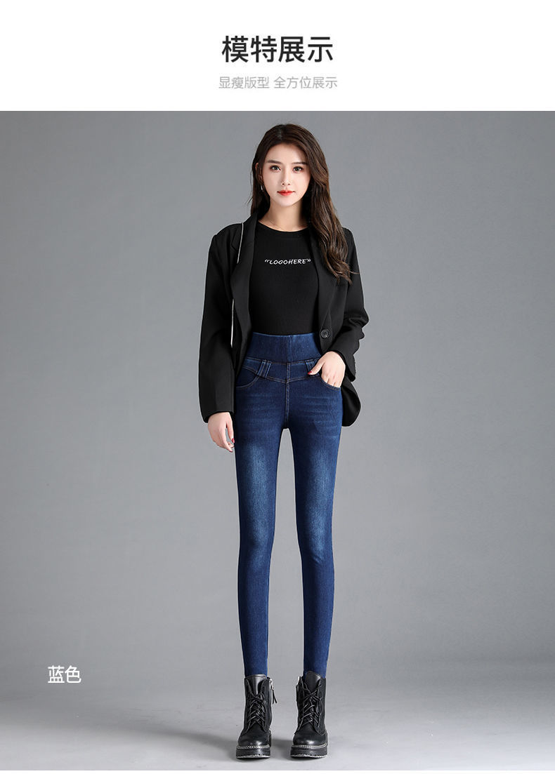 浅色牛仔裤女秋冬新款加绒加厚高腰显瘦大码紧身修身小脚铅笔裤子