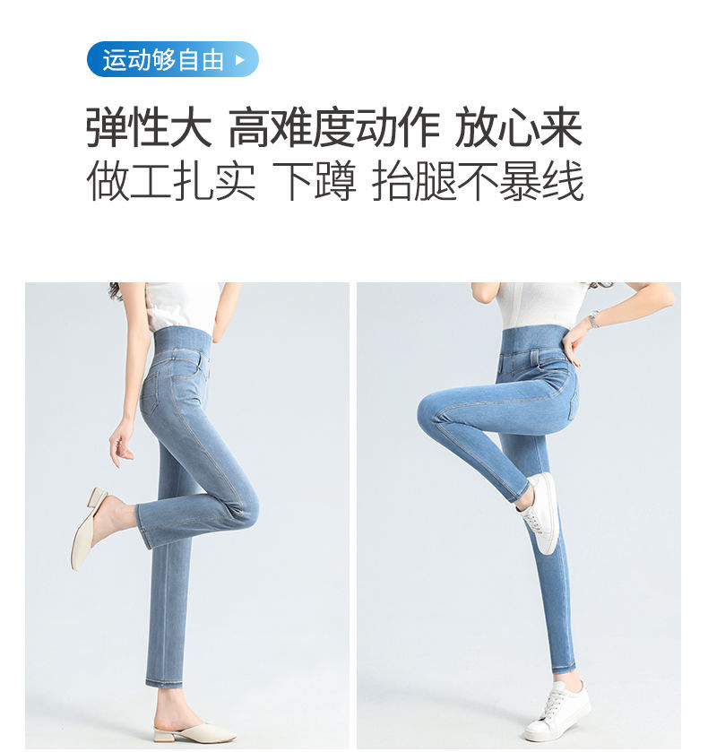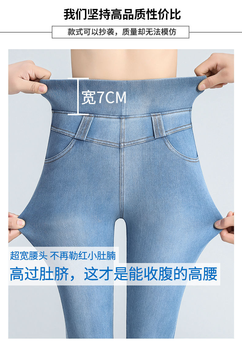 松紧腰高腰牛仔裤女春秋2025新款显瘦弹力收腹女士紧身大码小脚裤