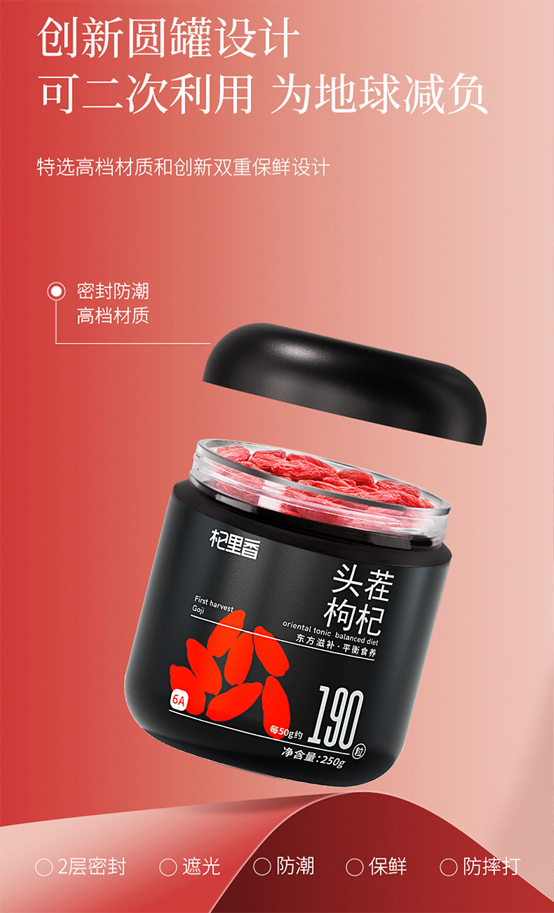 パッケージ仕様 杞里香250g丸缶の頭の切り株190粒のクコの実