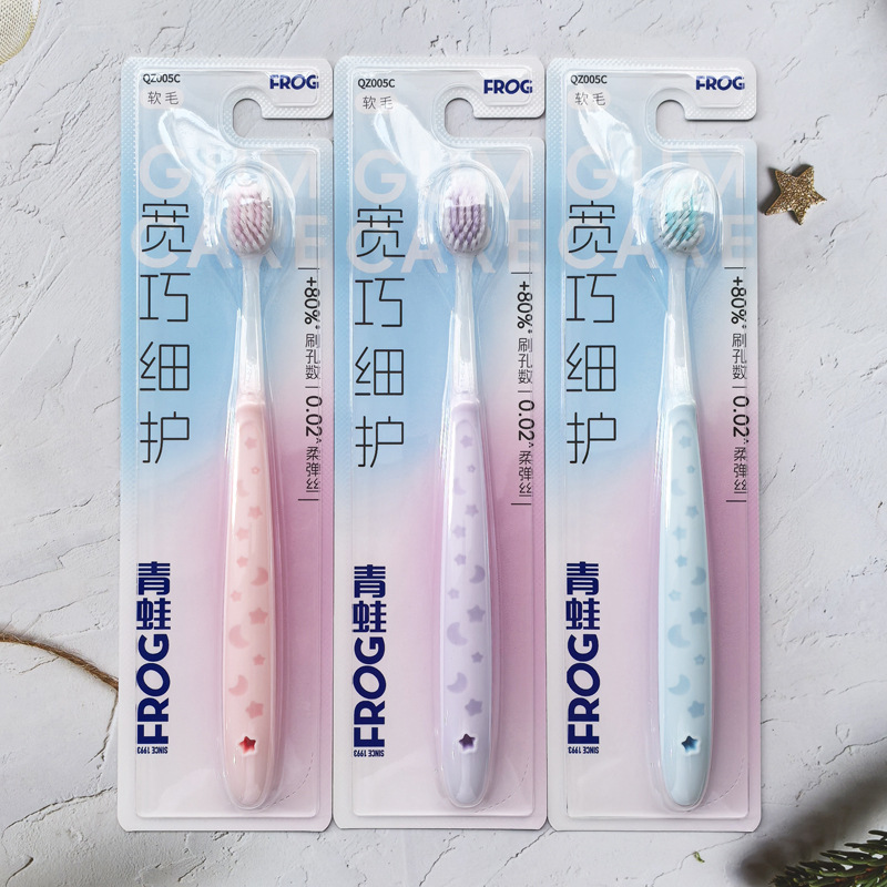青蛙005C宽巧细护软毛牙刷深入清洁小宽头纤细弹韧刷毛牙刷批发
