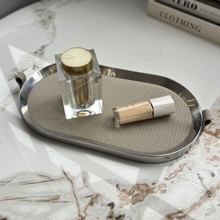 現代アートメタルレザーオーバルトレイモデルルームバスルームホームジュエリー装飾収納オーナメント