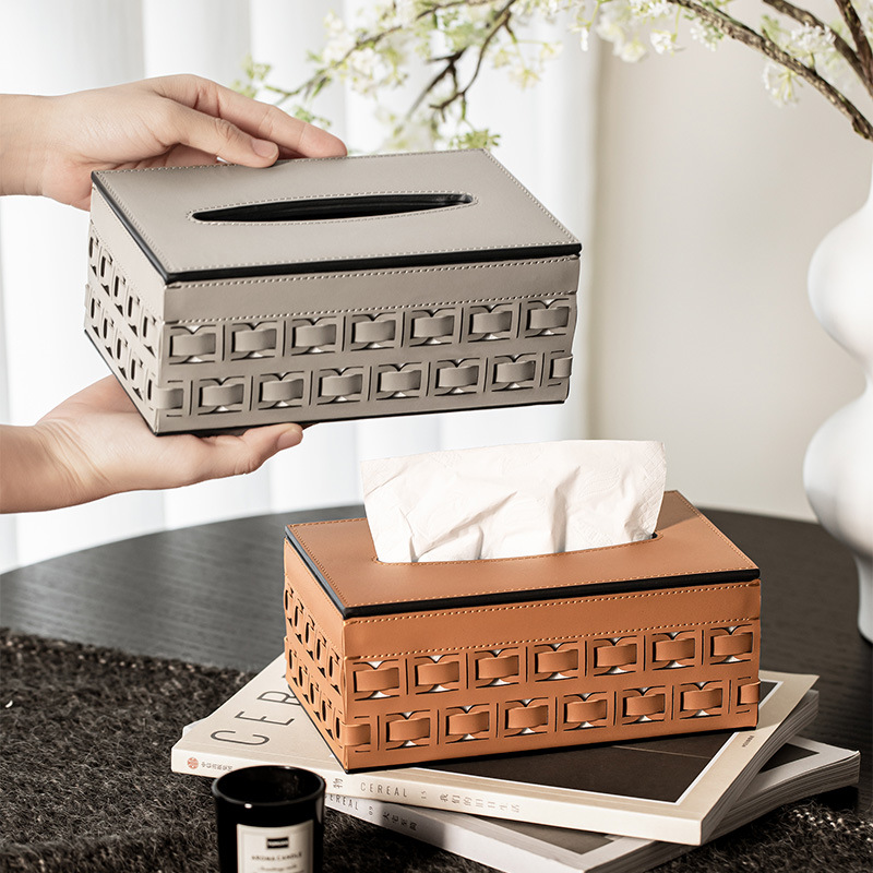 現代のシンプルな金属革のティッシュボックスのリビングルームのサンプルの部屋の家の装飾のアイデアのお茶のテーブルは紙の箱を引き出します。