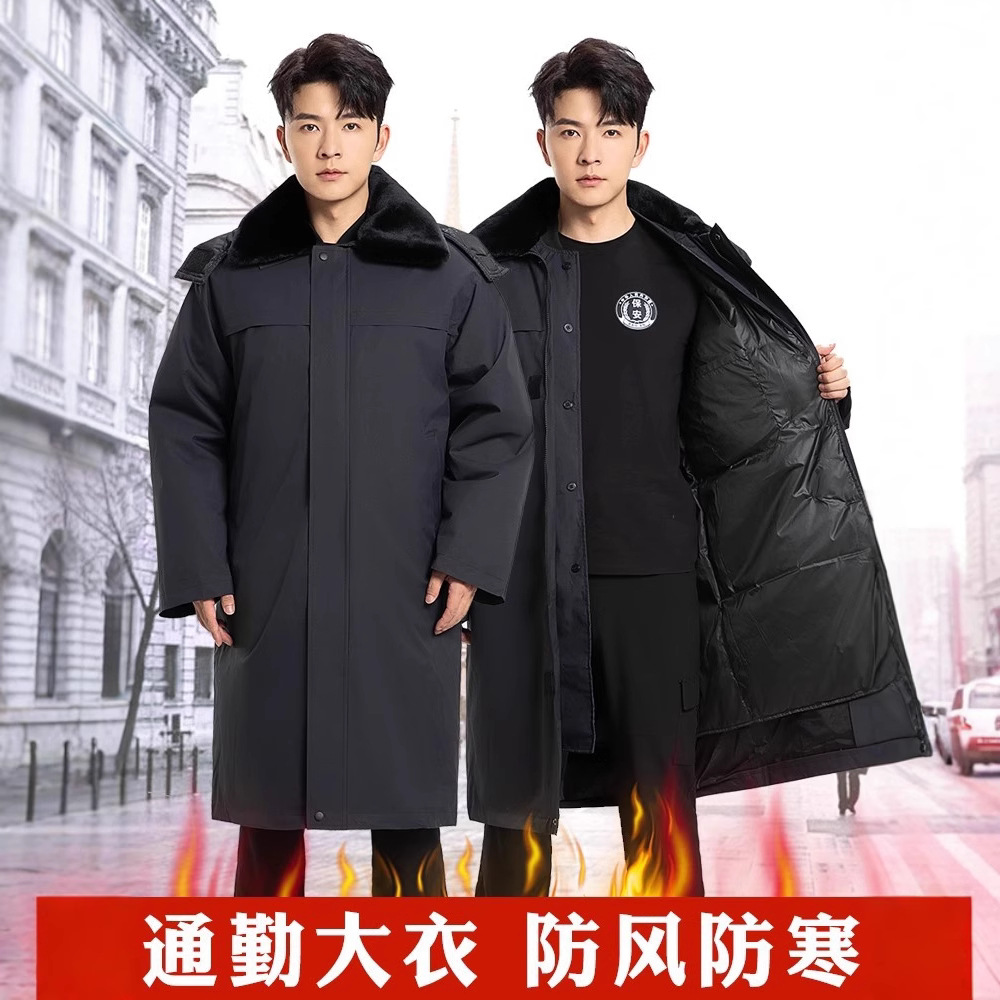 冬季新款加厚通勤大衣保安工作服冬装加长羽绒棉服防寒服棉袄执勤