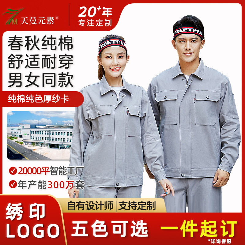 純綿作業服スーツ秋長袖労働保護服溶接機工場ワークショップ工場耐摩耗性と汚れに強い労働保護作業服