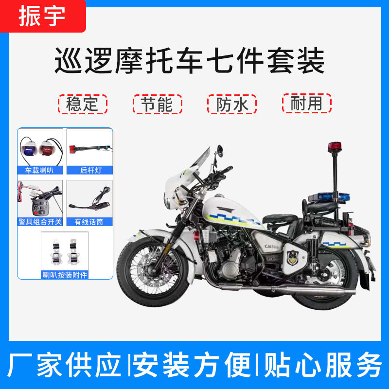 パトロールバイク7点セット車載ラッパ前円灯後バーベル灯有線マイク警具セットスイッチ