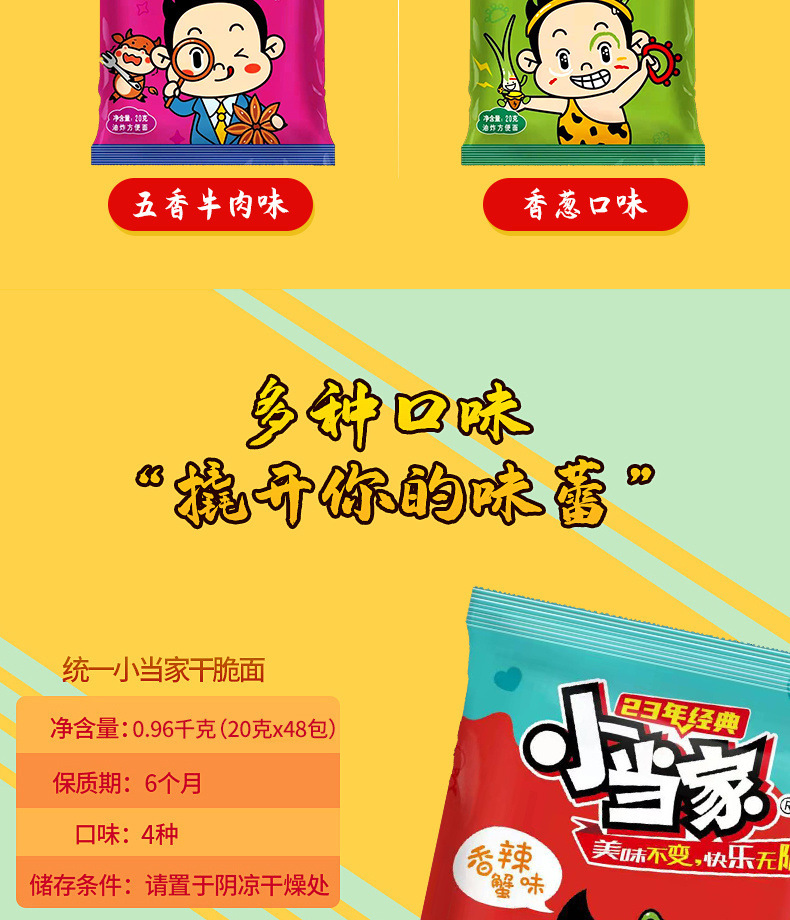 统一小当家干脆面20g香辣蟹五香牛肉掌心脆干吃面童年怀旧解馋零