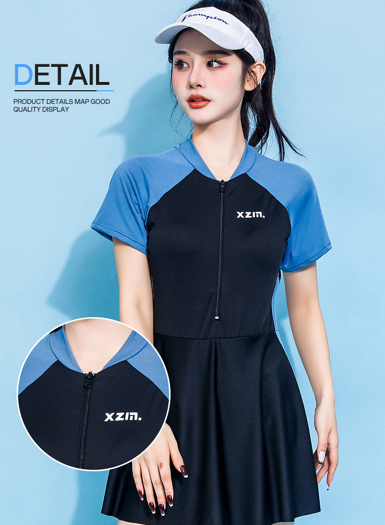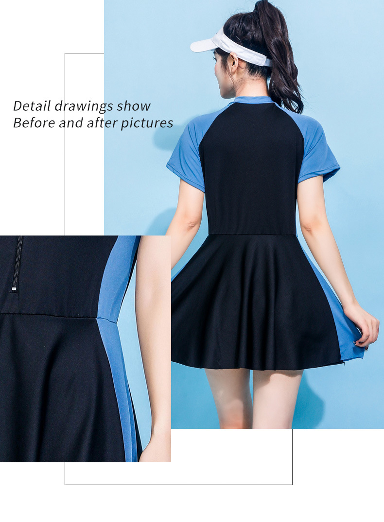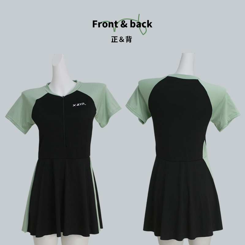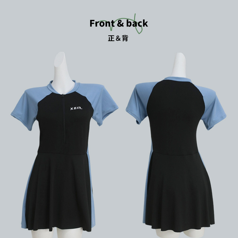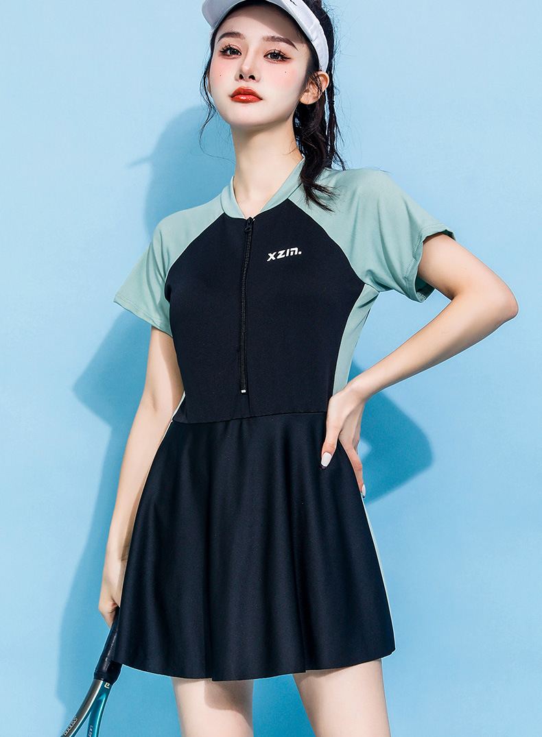 分体水着女性保守スカート式痩せ半袖スポーツ風水着韓国ins隠れ温泉水着